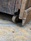 As expected for a piece of this age, it has undergone sympathetic restorations, including a repaired top drawer and the addition of a small middle drawer, ensuring its continued functionality while retaining its original character. Resting on its original wooden casters, this chest remains conveniently mobile, offering both beauty and practicality.