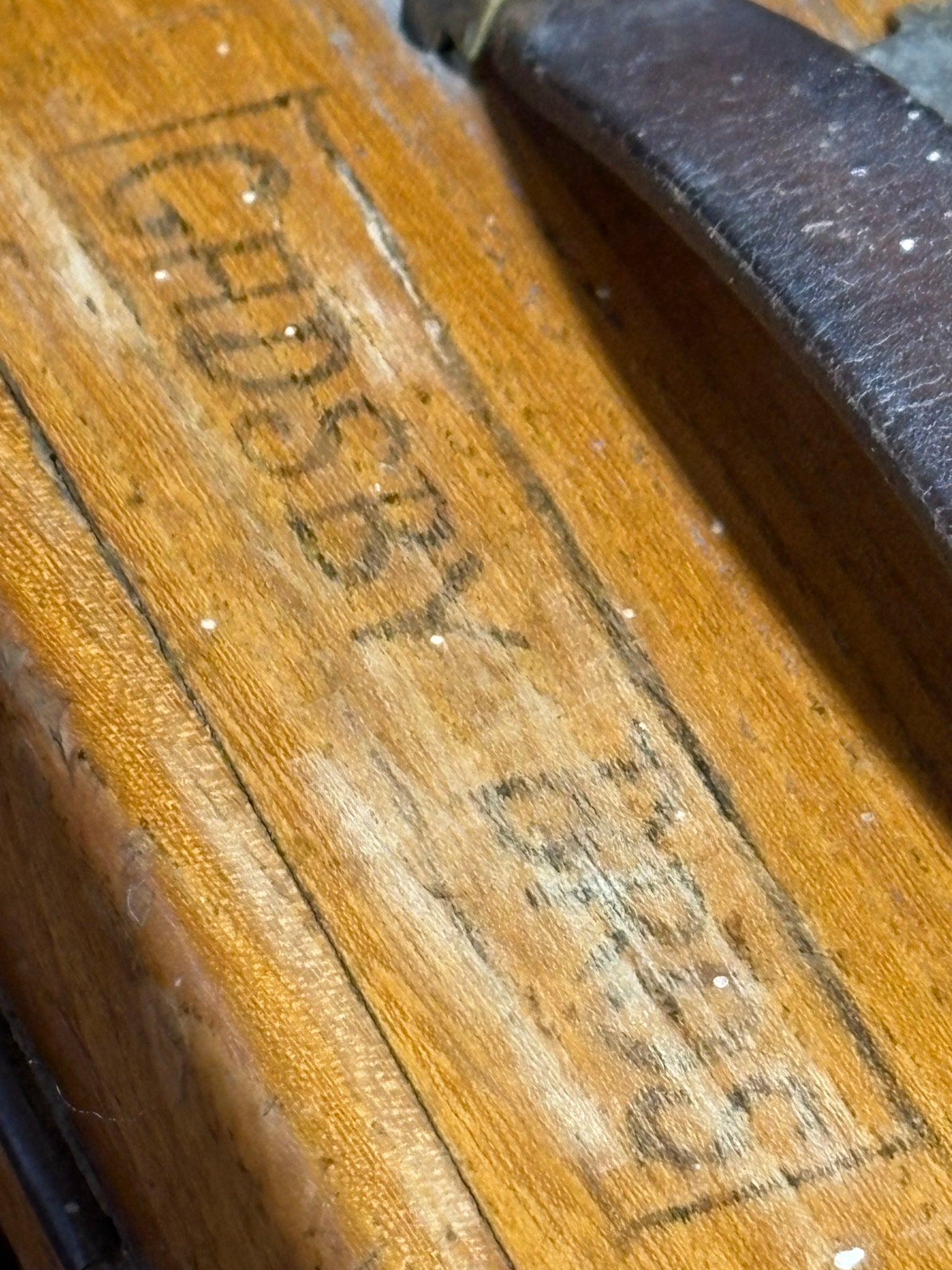 Condition: Good vintage condition with age-related wear to the wood and metal; sold untested.