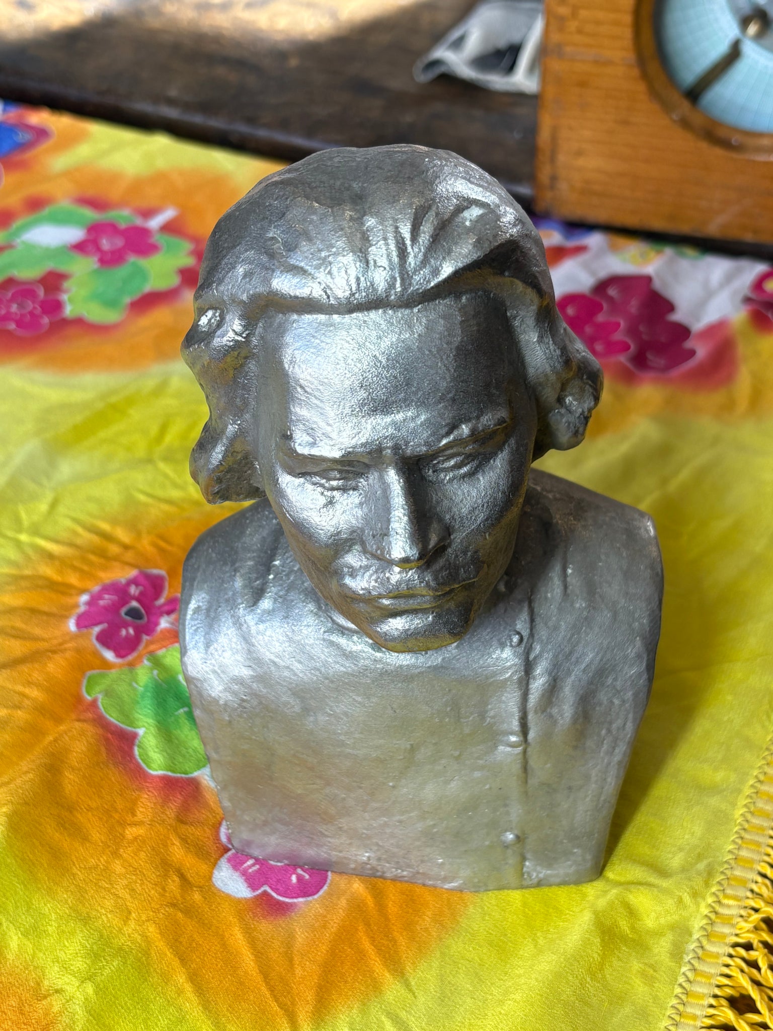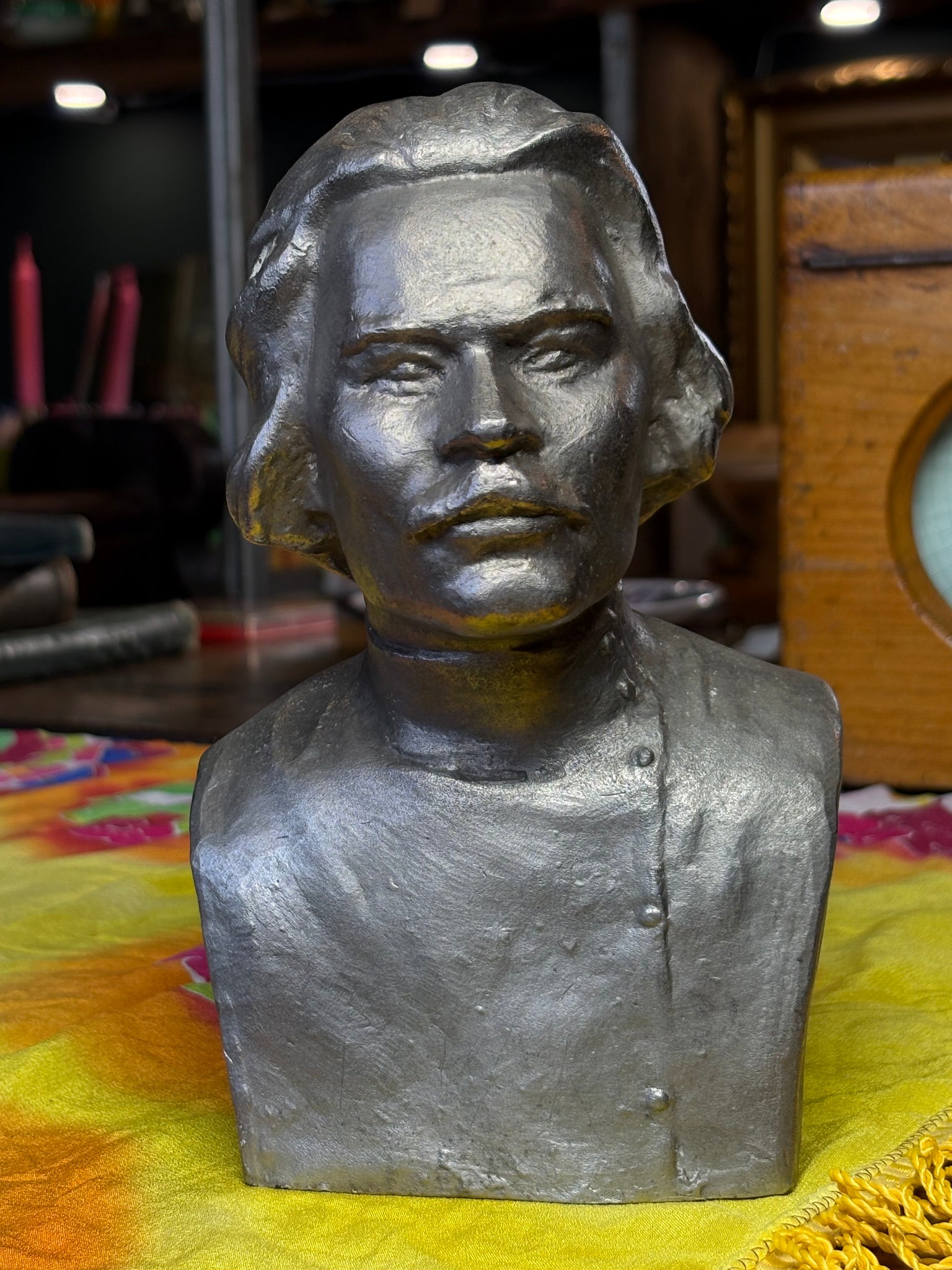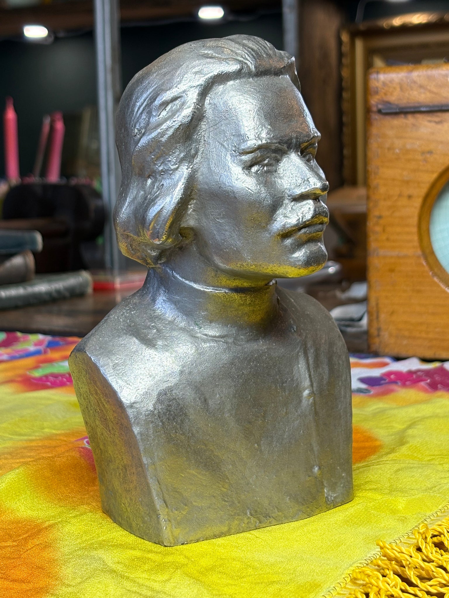 Aluminium bust of Maxim Gorky, 1981 – Soviet-era sculpture from Leningrad, vintage Russian metal art