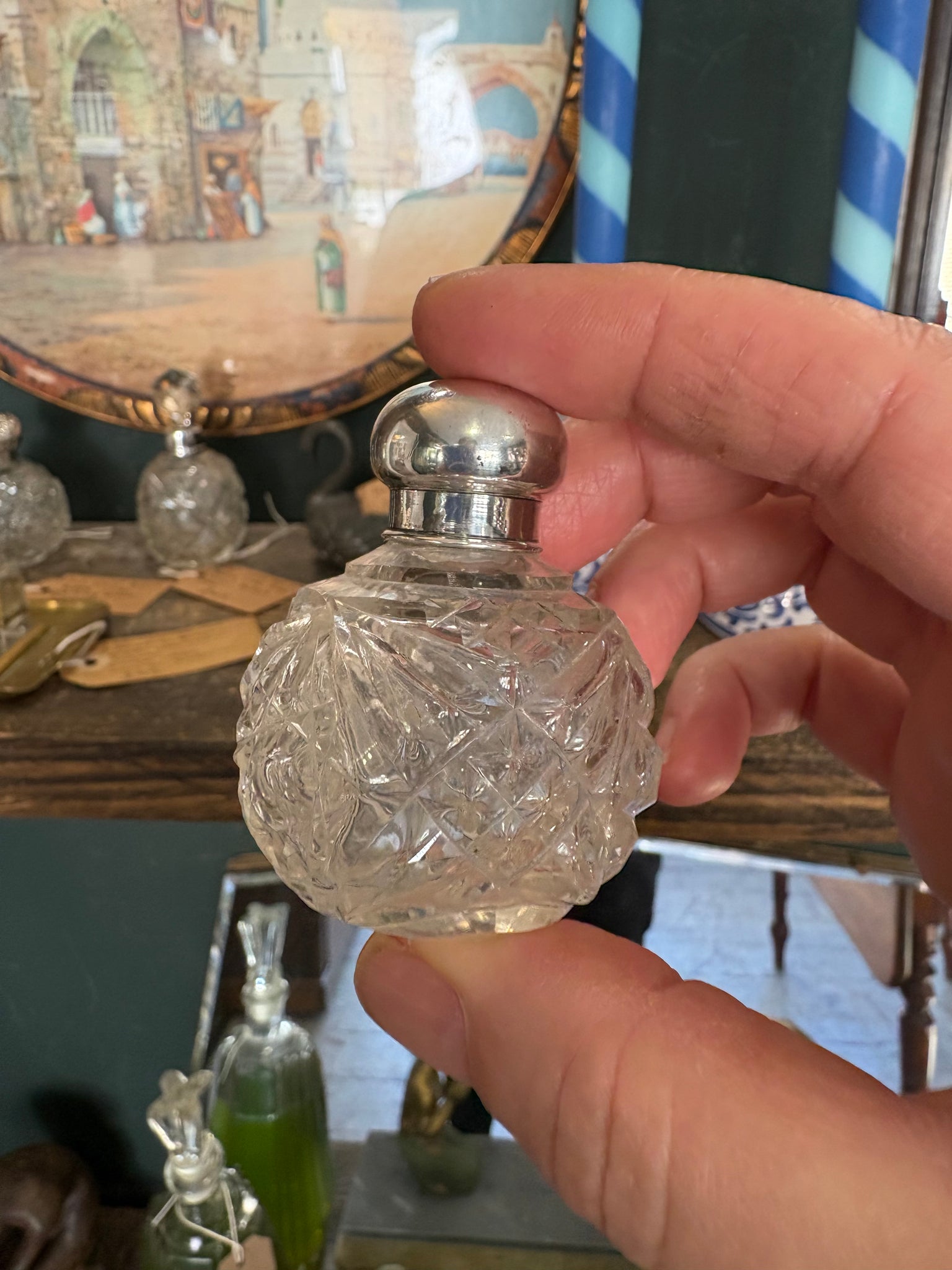 Small Antique Edward VII Silver Top Crystal Scent Bottle – Birmingham 1908
