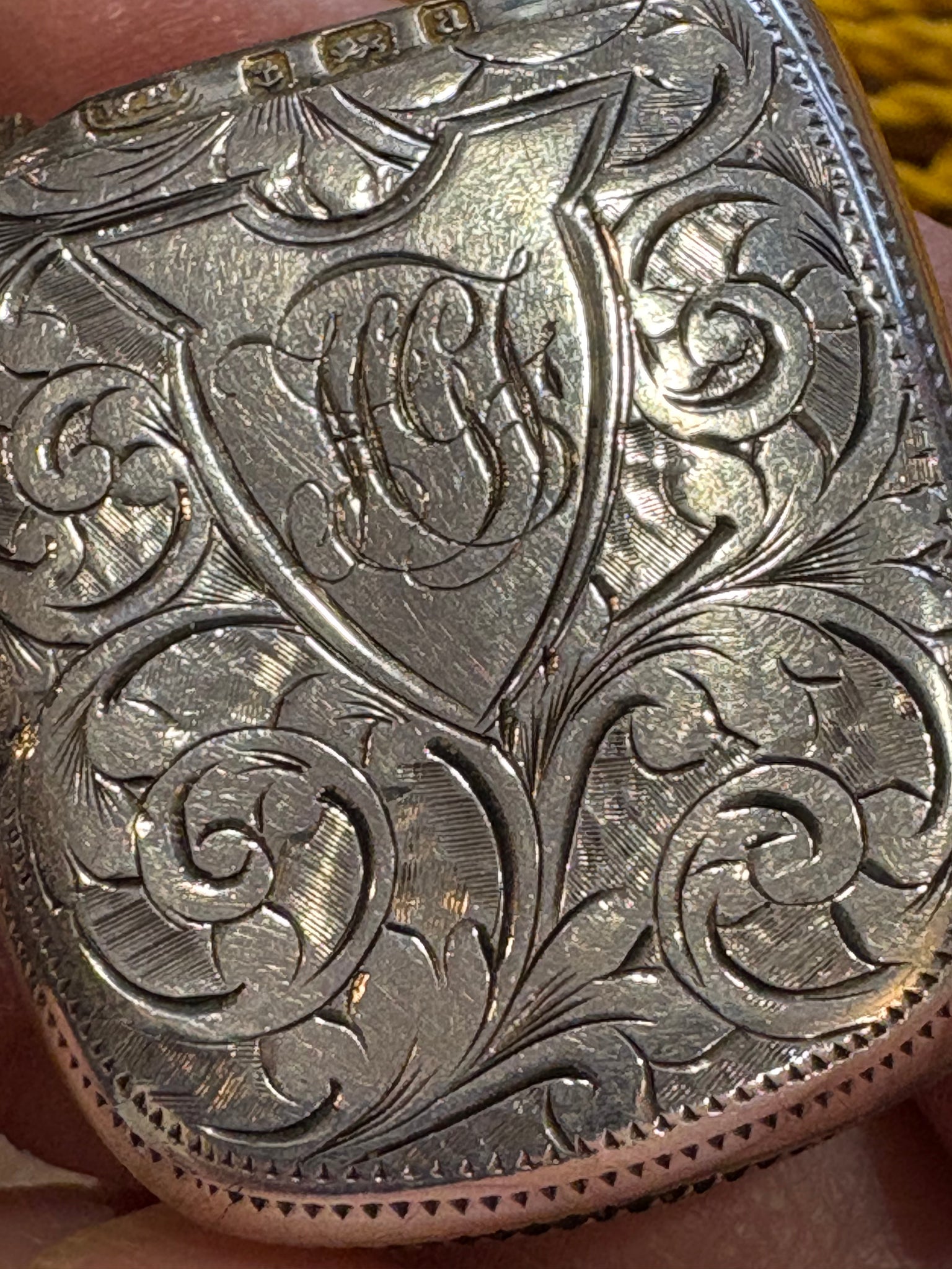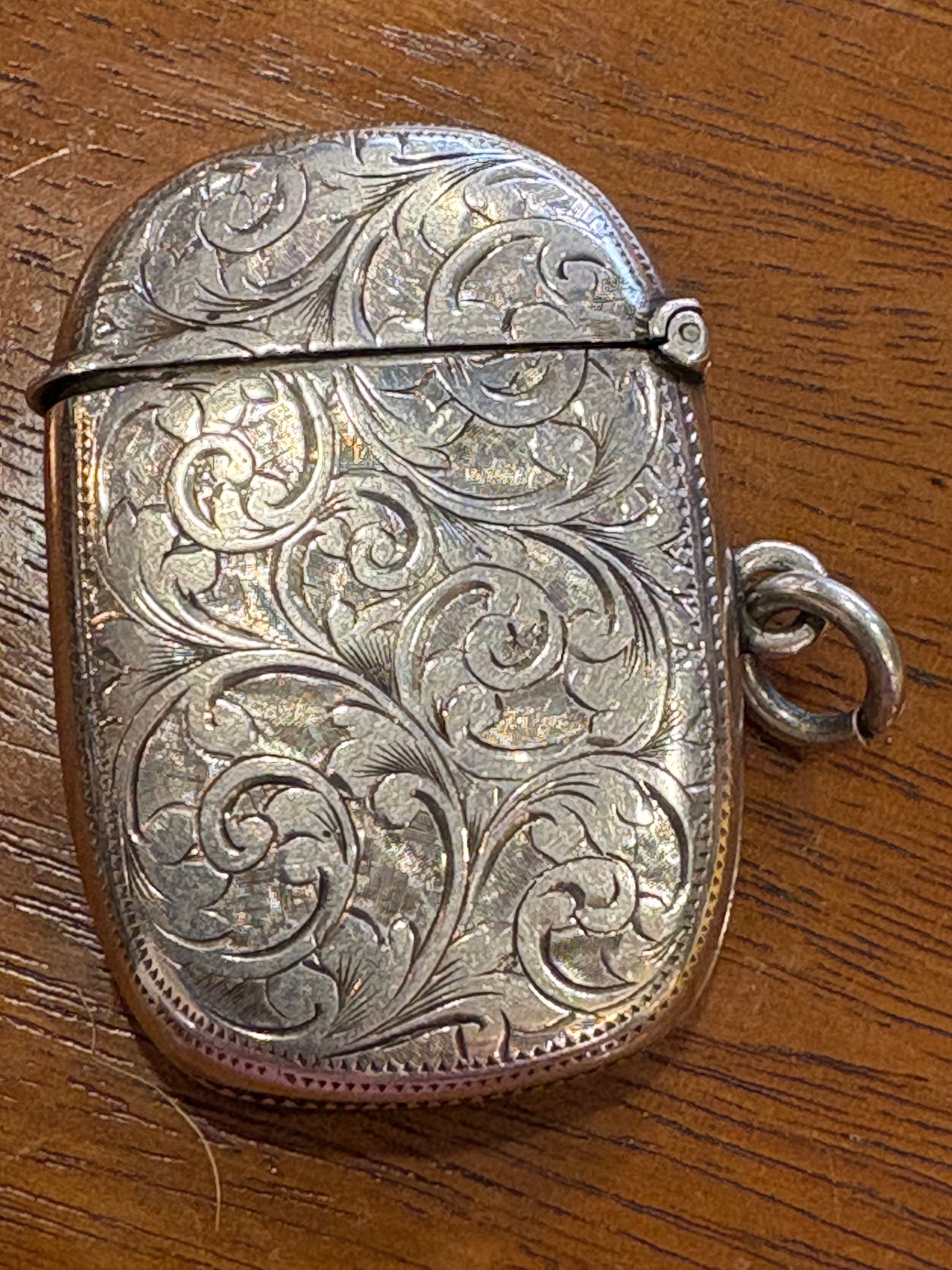 Antique Sterling Silver Vesta Case, Birmingham 1900 – Engraved with Acanthus design