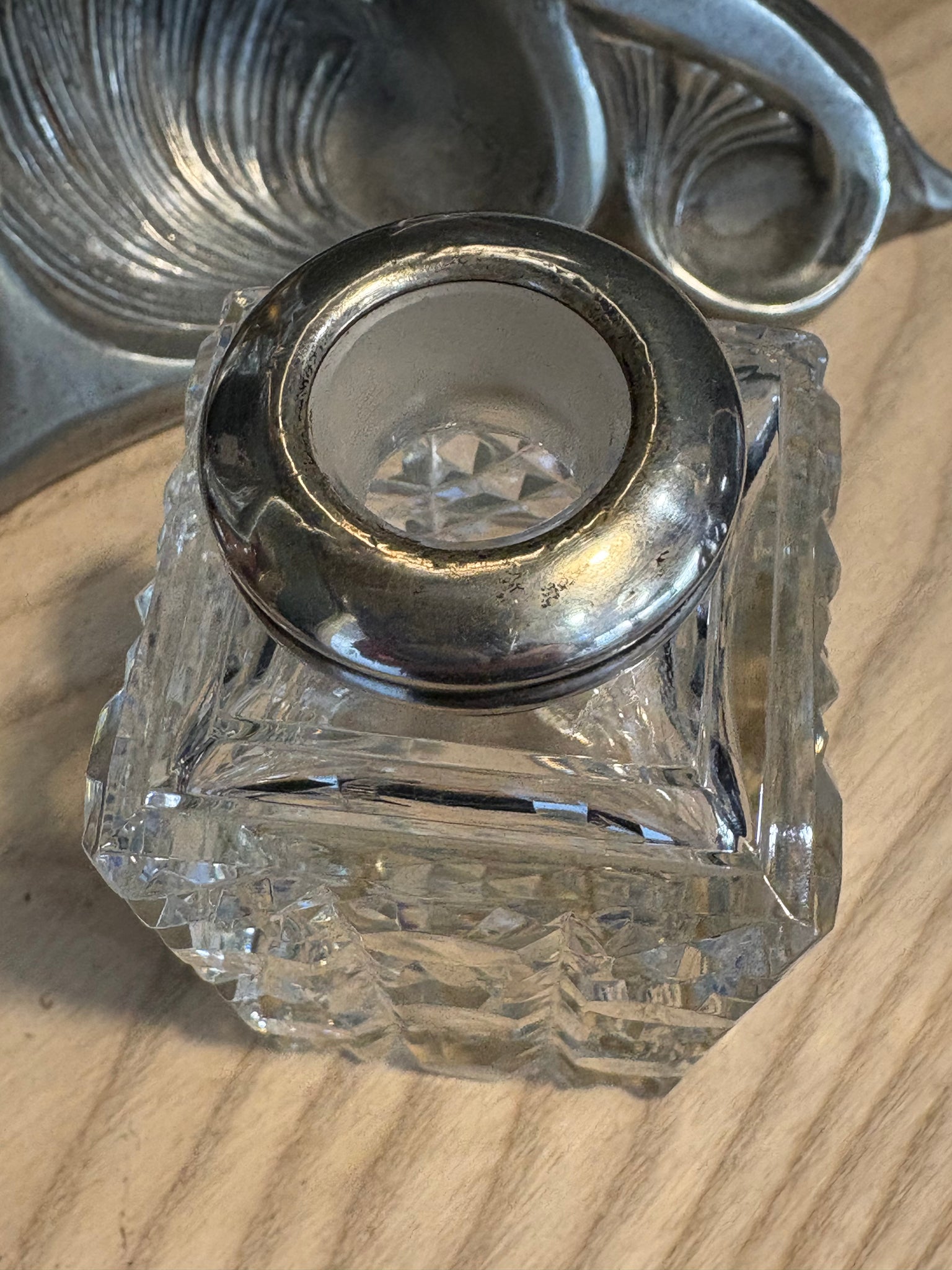 Art Deco Cut Glass Perfume Bottle with Silver Mount – 1930s Vintage