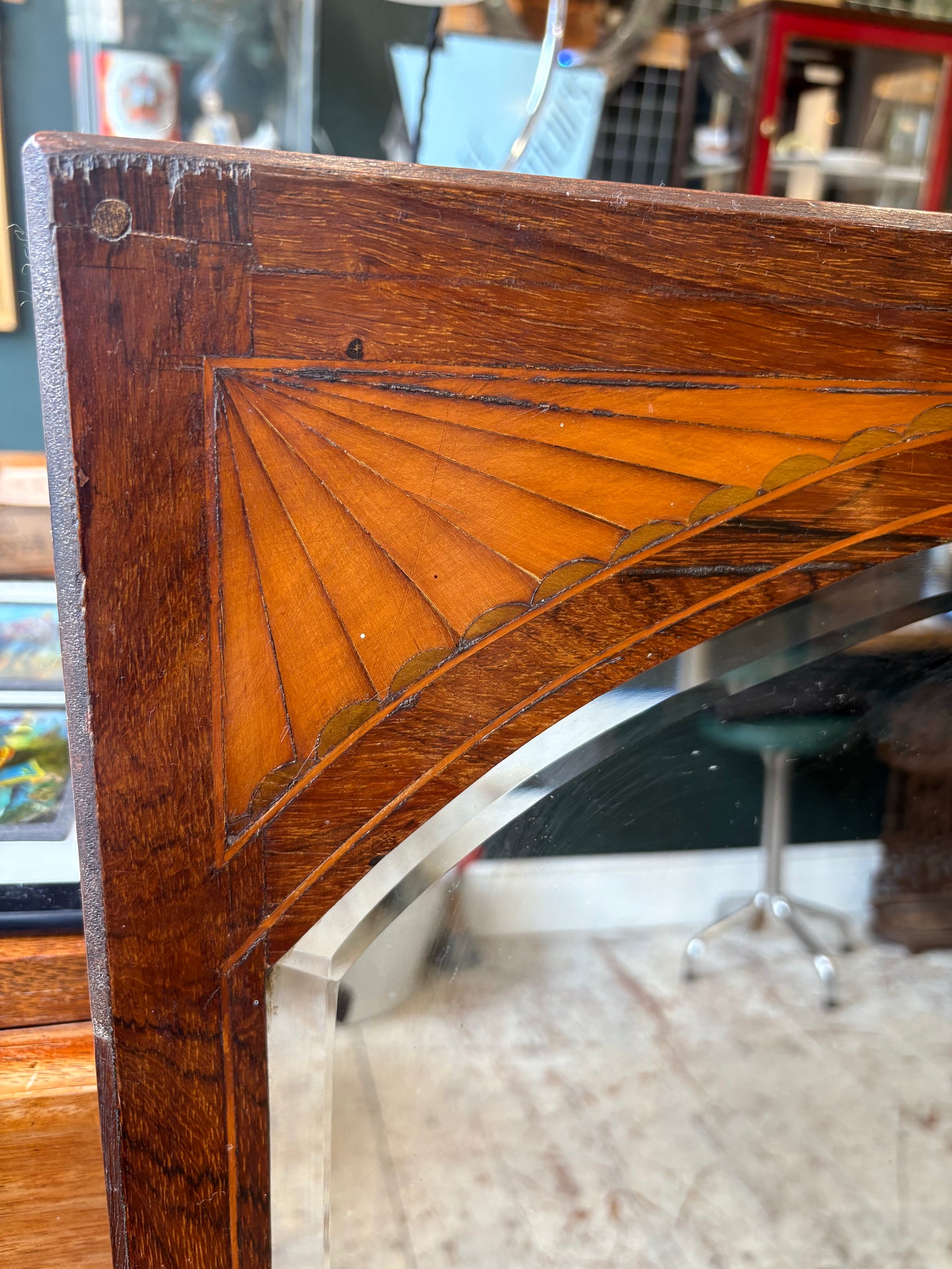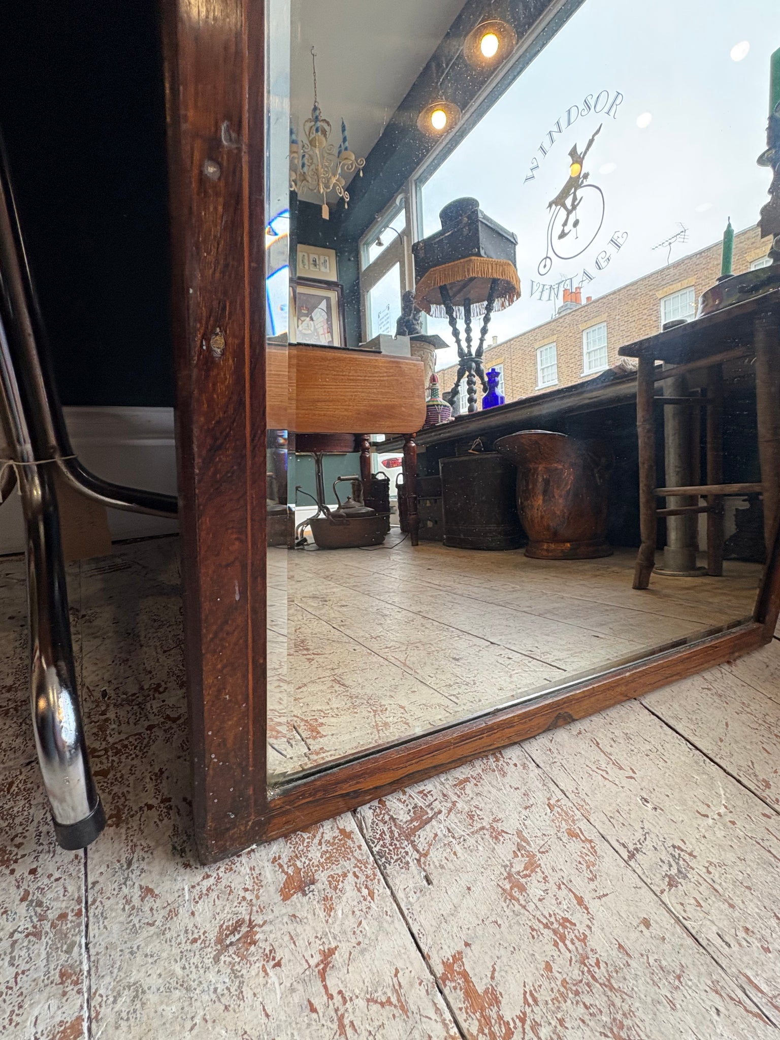 The mahogany frame has developed a rich, warm patina over more than a century, while the backboards are pine, typical of early 20th-century cabinetmaking. It’s a heavy, well-made mirror with lovely proportions and quiet character — ideal for a hallway, bedroom, or dressing area.