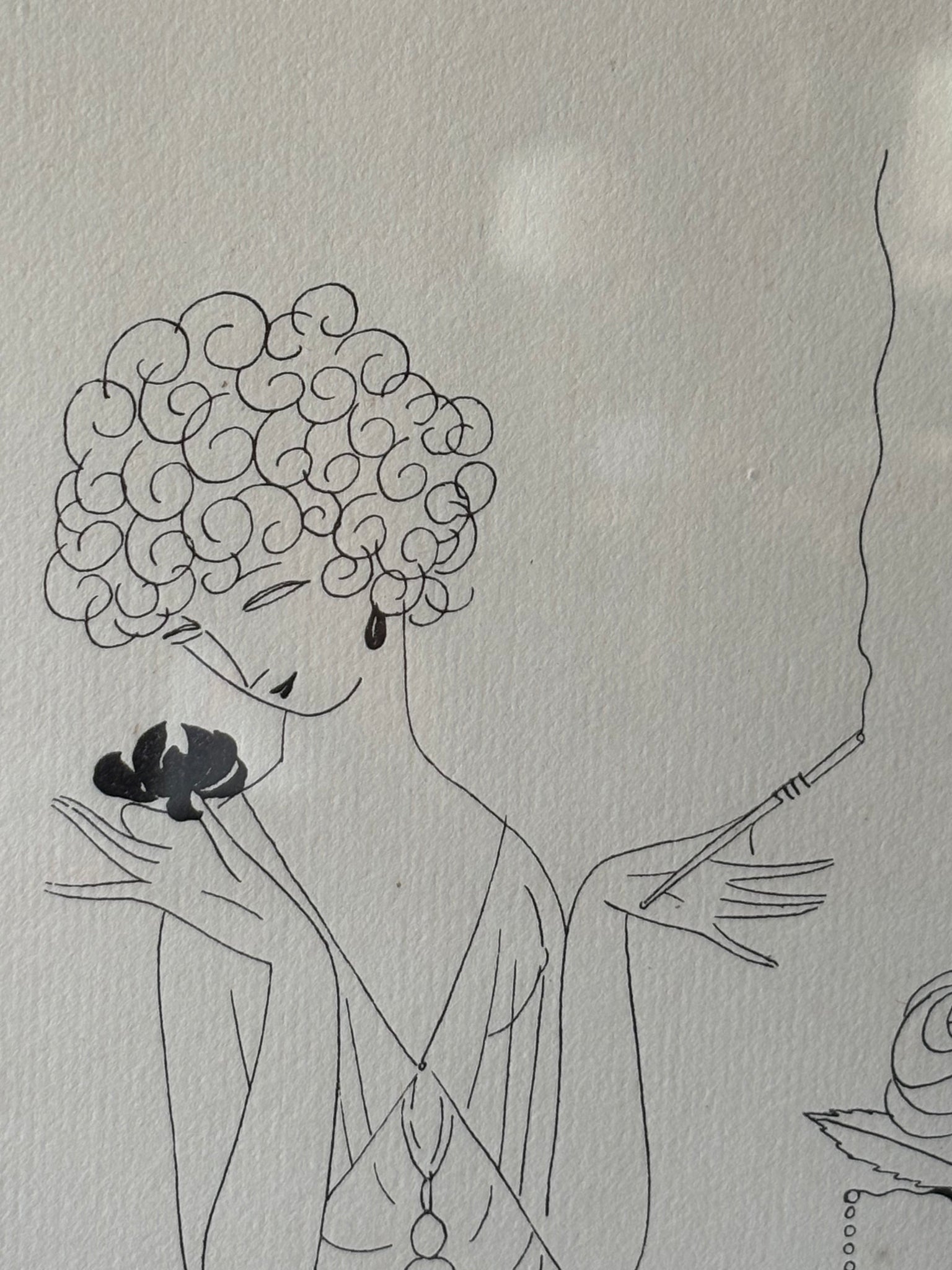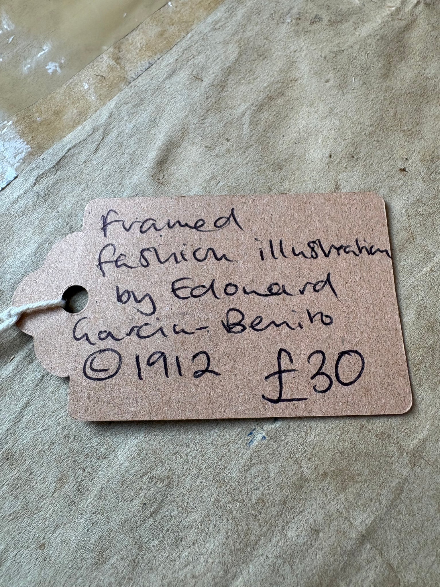 Executed using the pochoir technique, the image shows a refined fashion scene with a stylised female figure, delicate accessories and a strong sense of balance and movement. The restrained palette and confident line work are characteristic of the period and of Garcia Benito’s distinctive style.