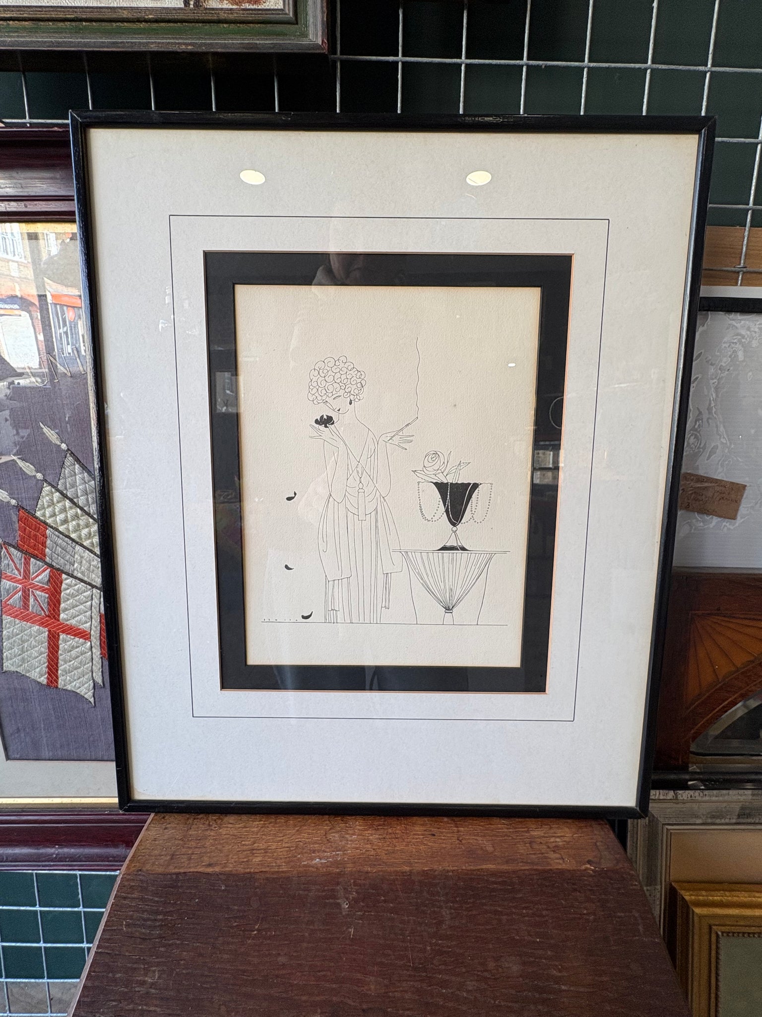The illustration is presented in a simple black frame with layered mounts, ready to hang and well suited to both classic and contemporary interiors.