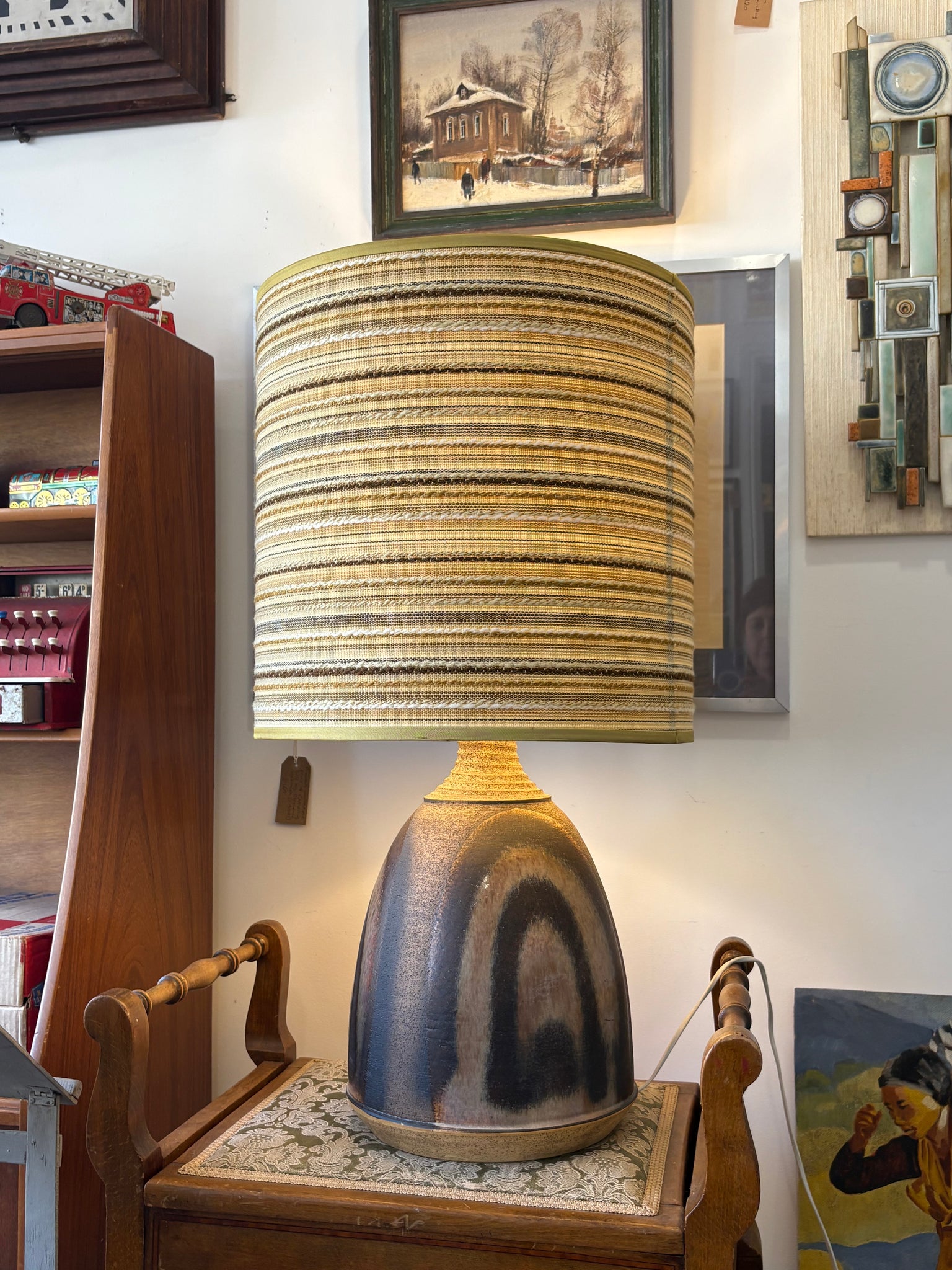 Large 1970s Iden Pottery Rye Table Lamp with Original Woven Shade