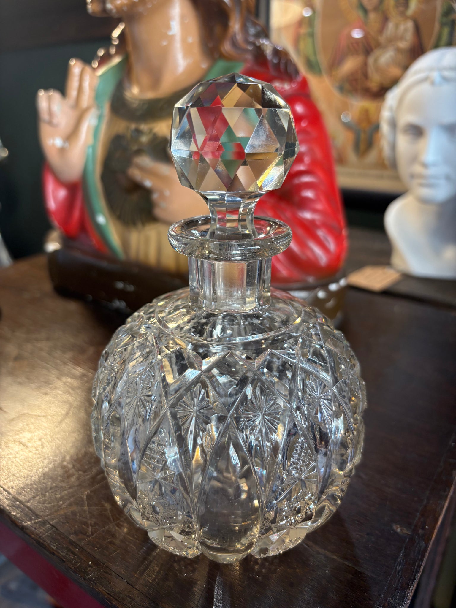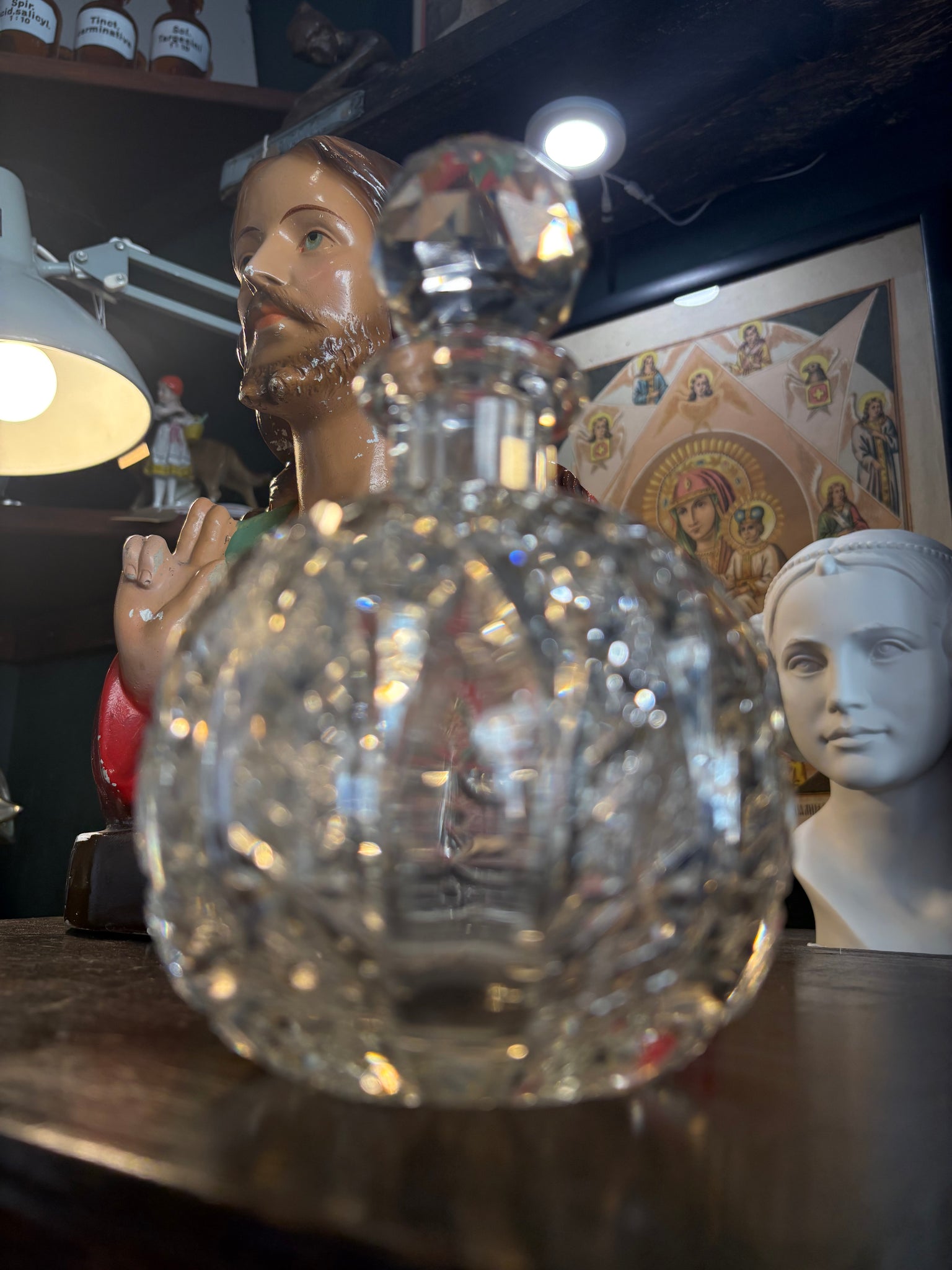 Large Antique Cut Glass Perfume Bottle with Original Stopper – 19cm