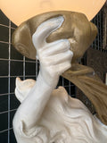 Made from painted resin in white and gold, this sculptural lamp stands an impressive 182cm tall including the glass shade. Her hair and sash swirl around her in classic theatrical style, adding a strong sense of movement and presence.
