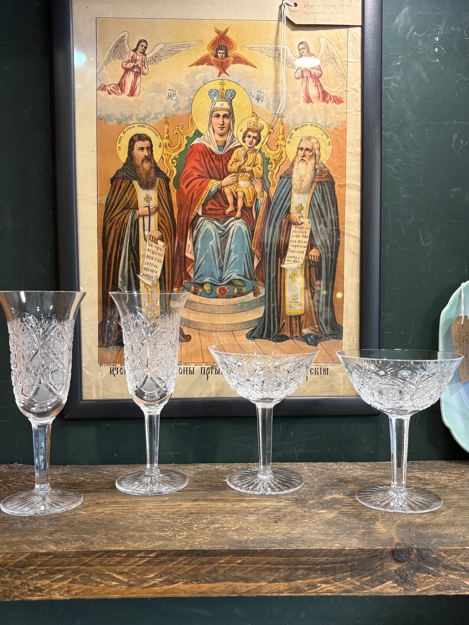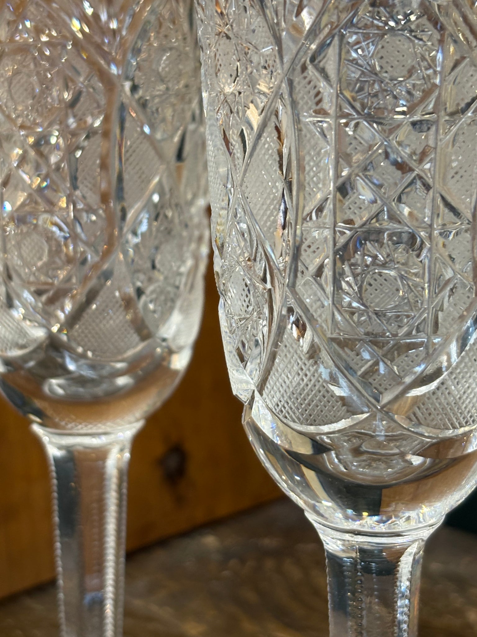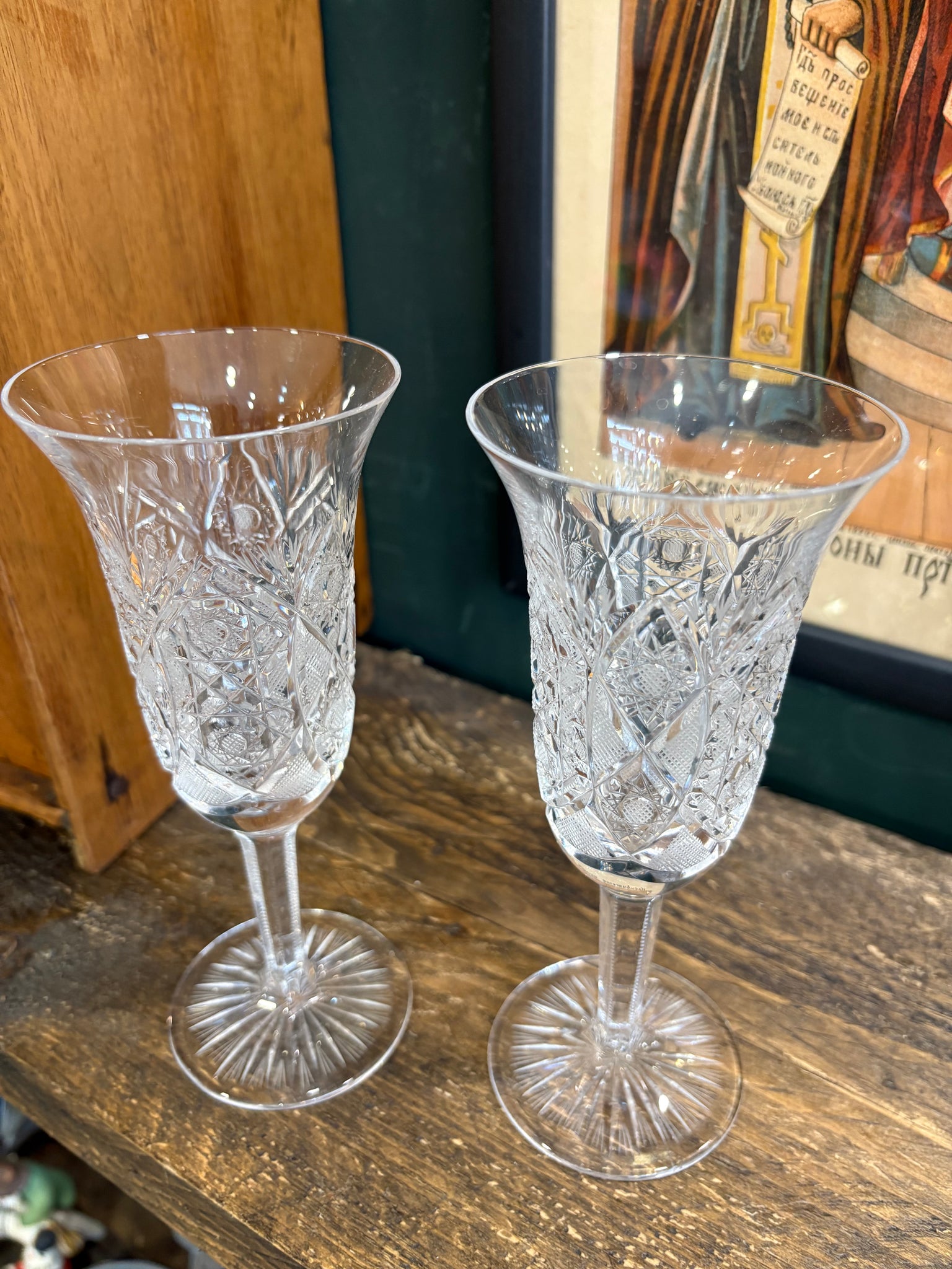 Pair of 1950s Bohemian Crystal Champagne Flutes