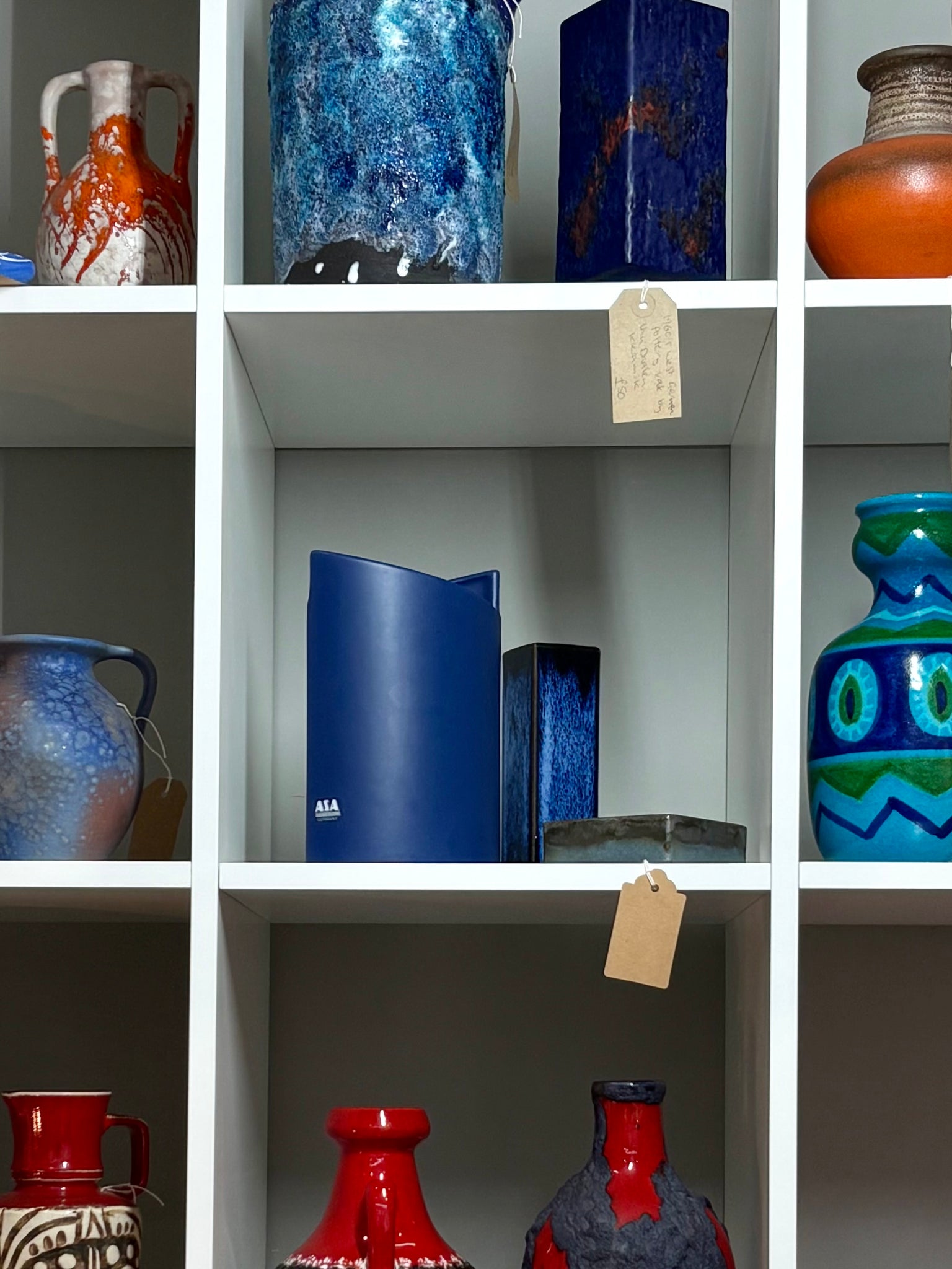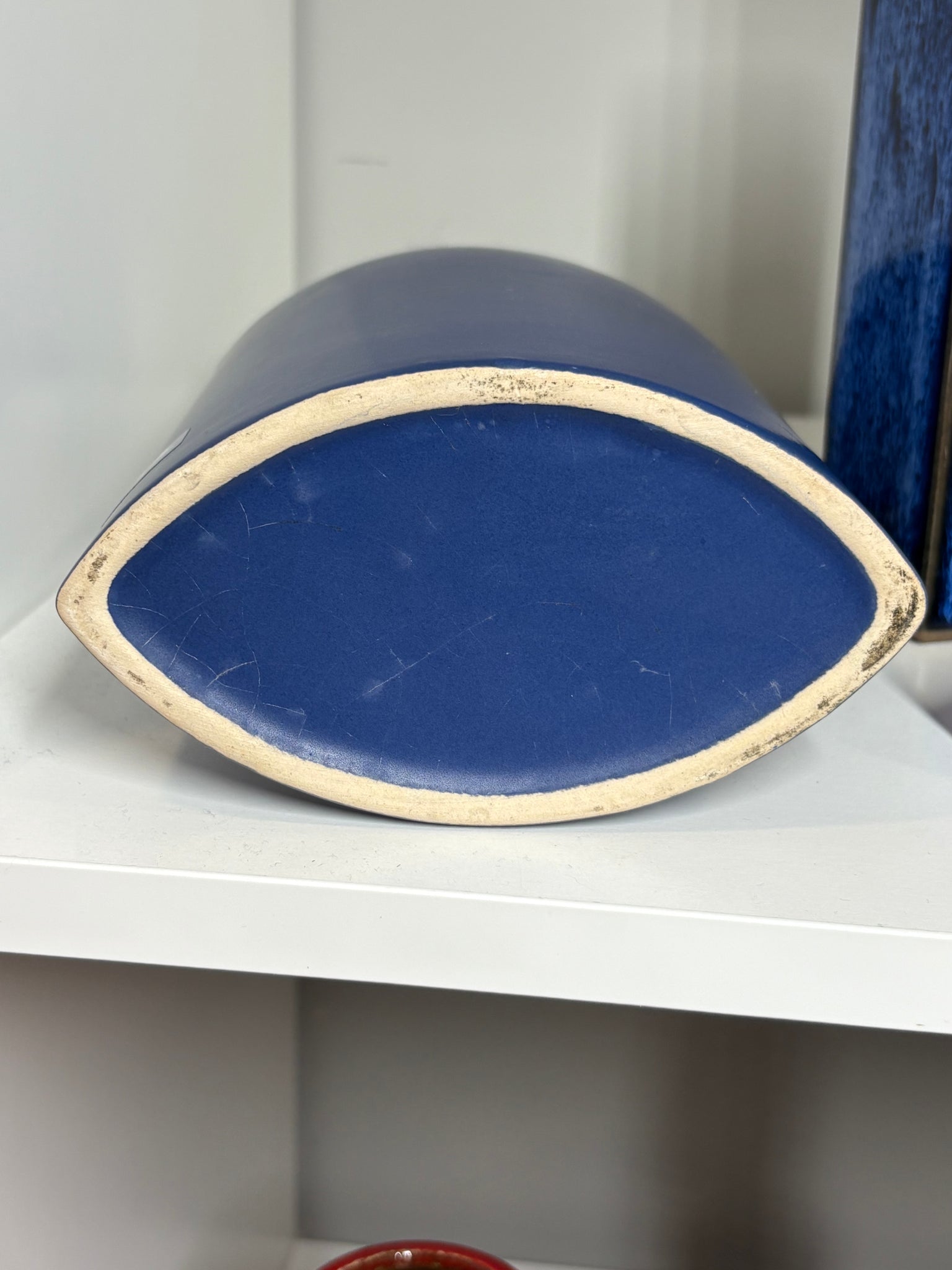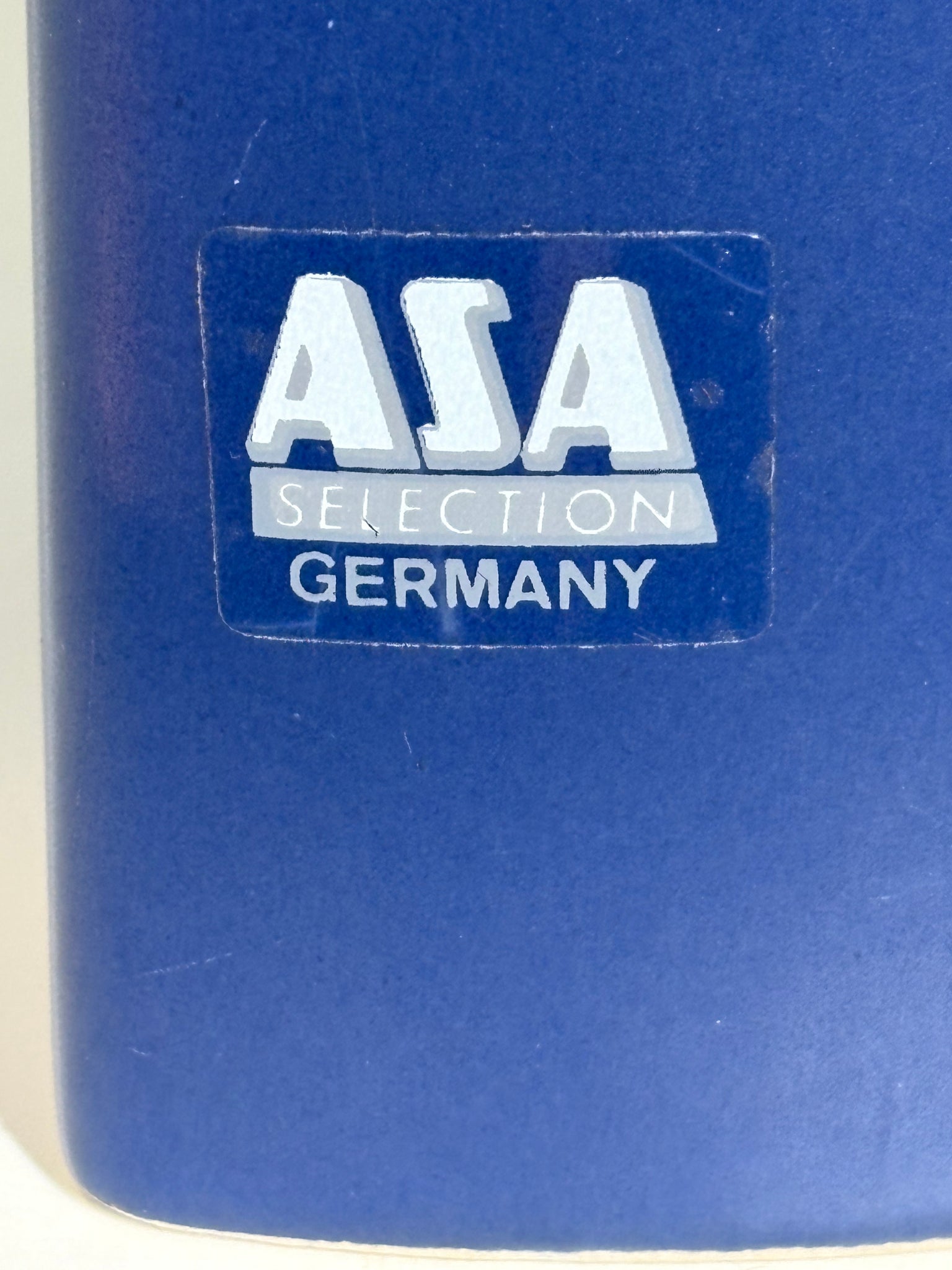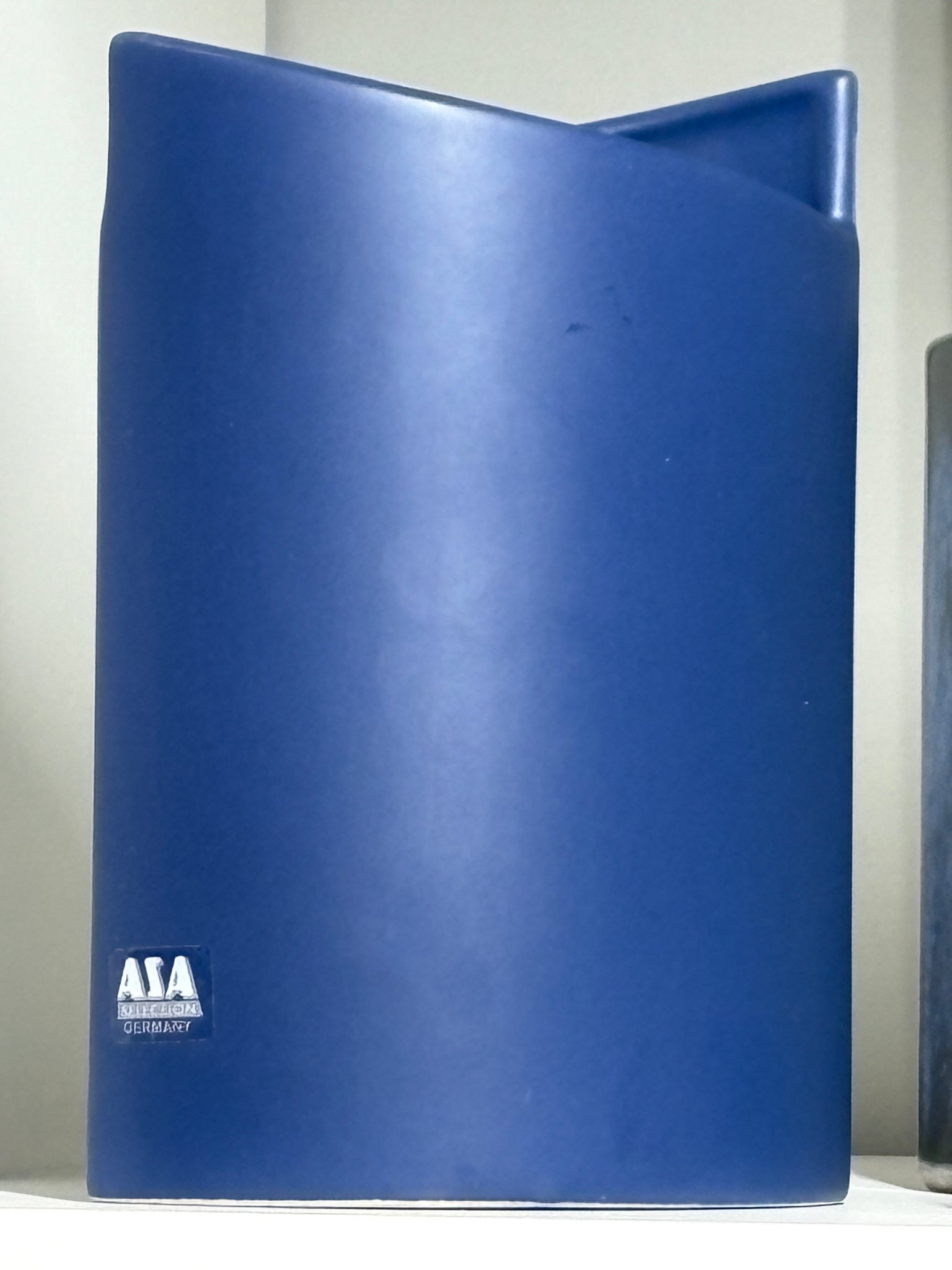 Striking postmodern blue vase by ASA Selection, Germany. This sculptural ceramic piece has a bold geometric silhouette and smooth matte glaze in deep cobalt blue. A stylish example of late 20th-century German design, perfect for a modern interior or as a collectible statement piece.