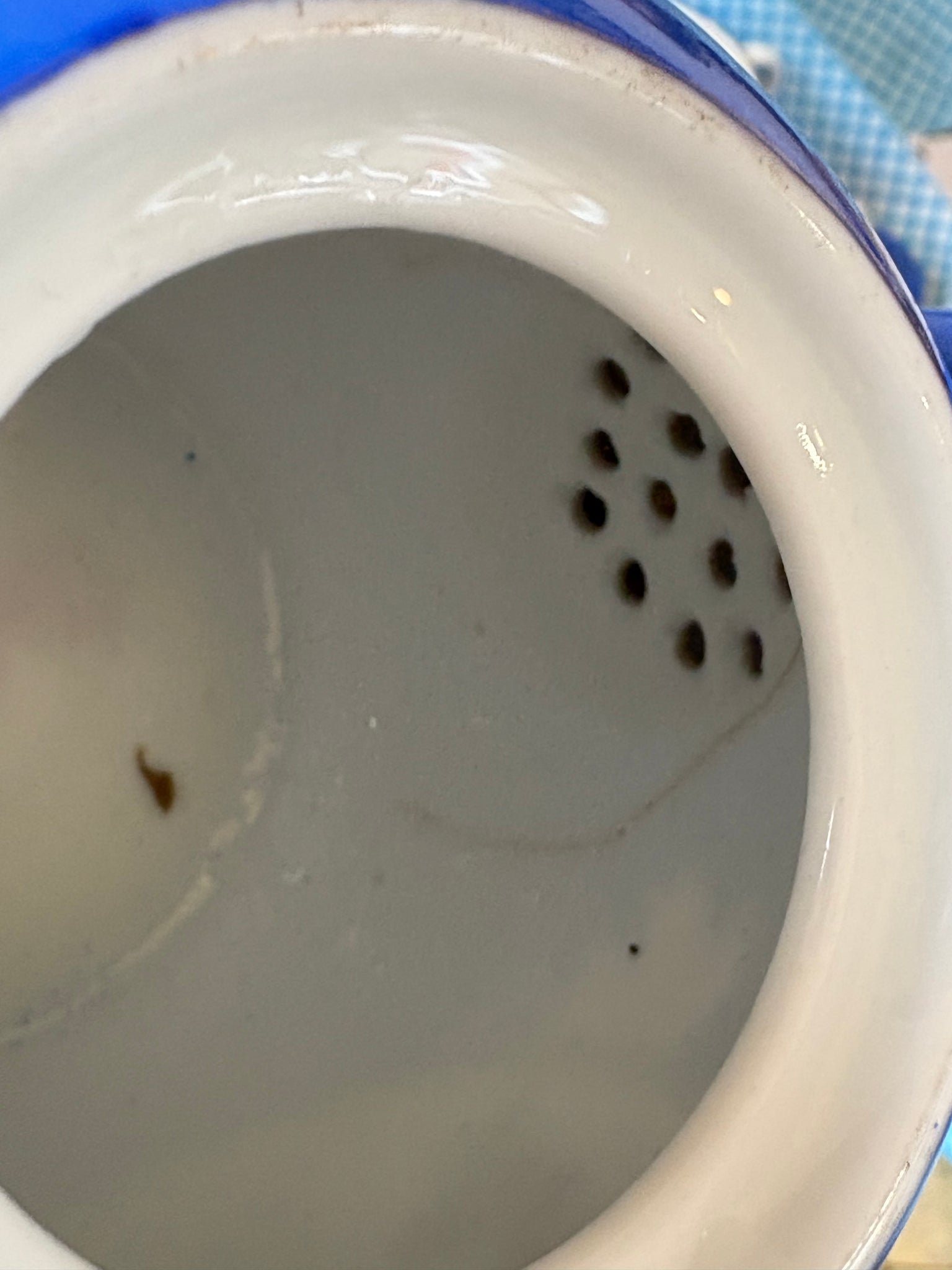 - Good antique condition. There is a small crack at the base of the spout. Please see the photos- sold as decorative item only. This is reflected in the price.