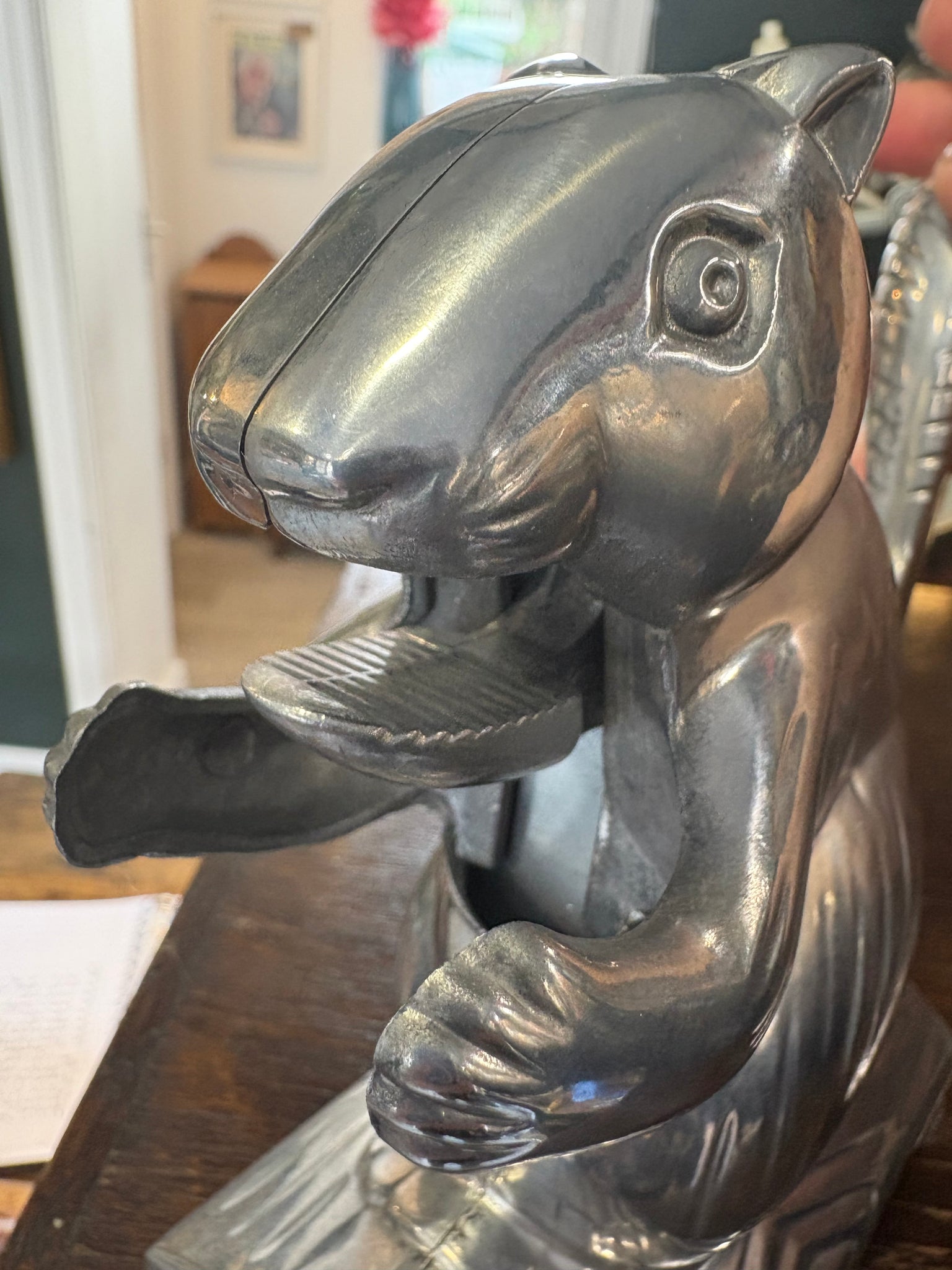 Vintage 1970s Cast Aluminium Squirrel Nutcracker – Mid-Century Novelty Nut Cracker
