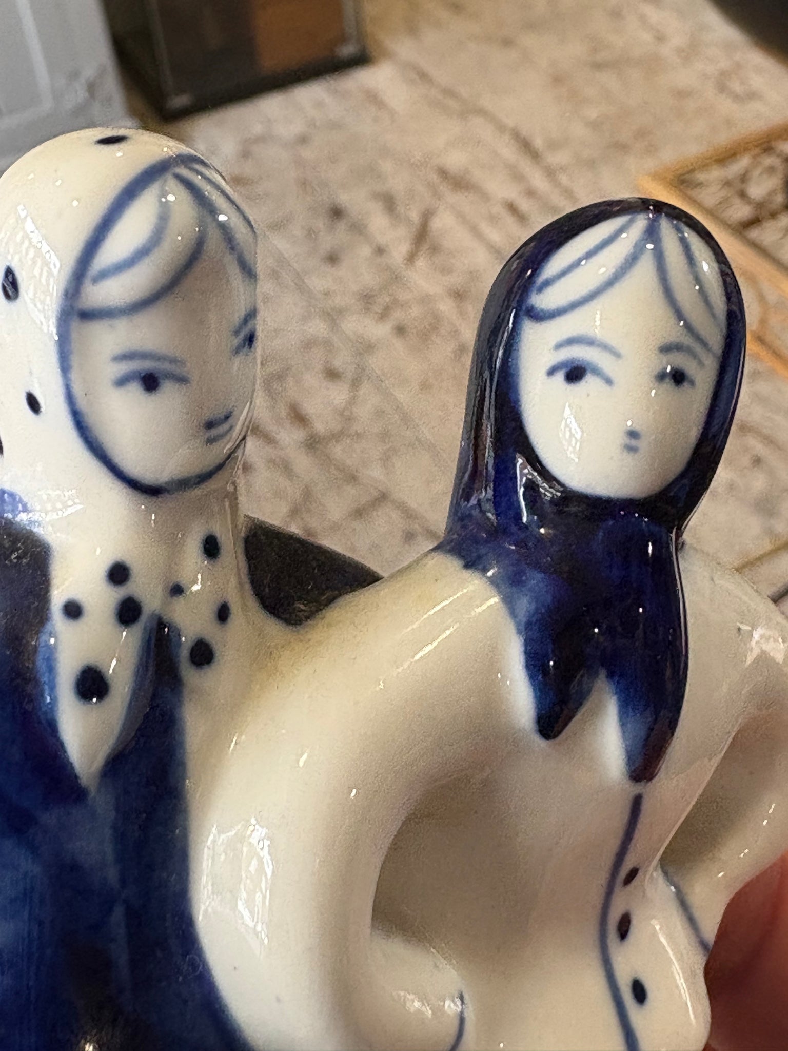 Vintage 1970s Russian Gzhel porcelain figurine – hand painted peasant women