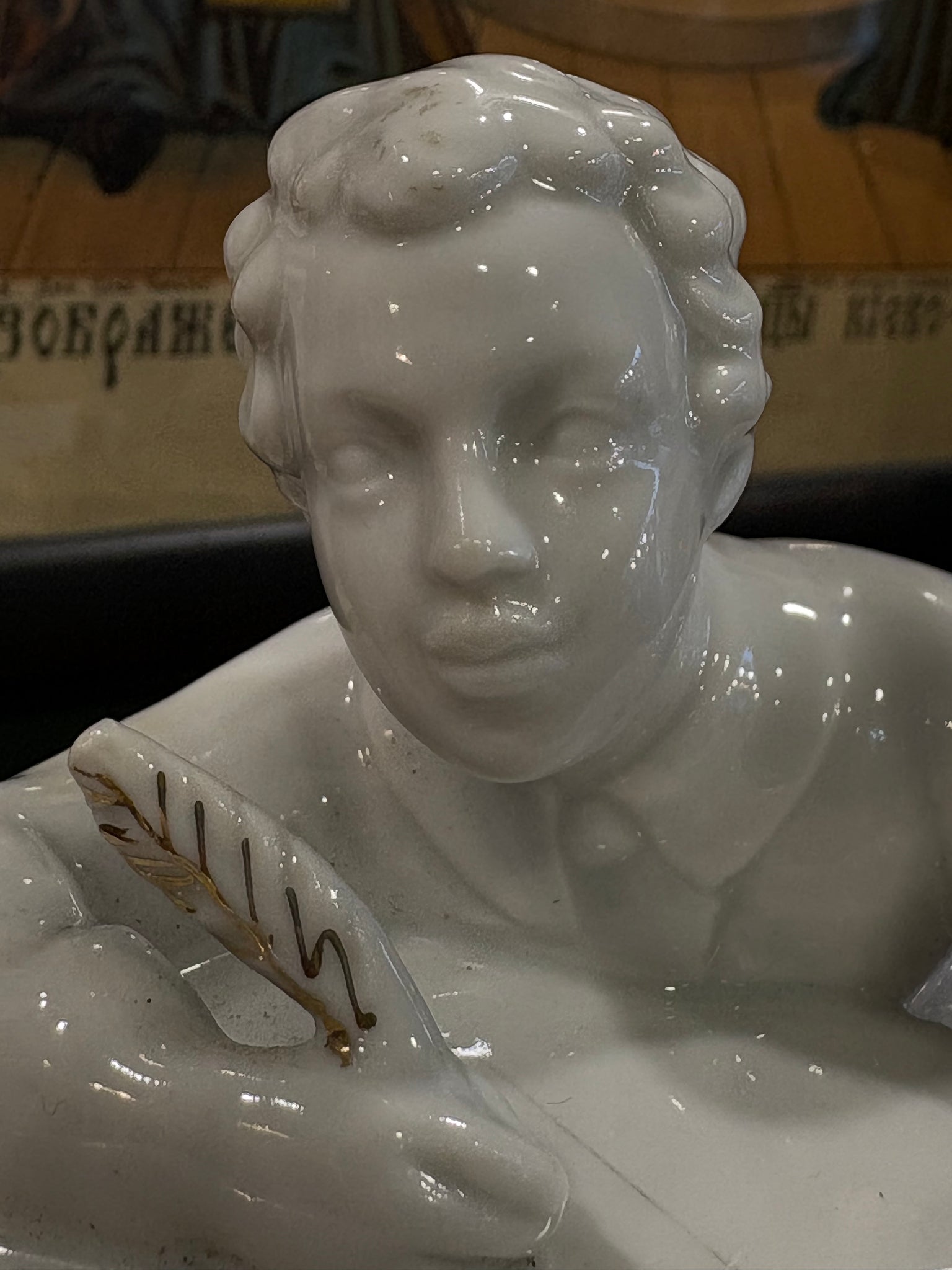 A lovely decorative piece for a desk, bookcase or cabinet, especially for anyone who loves literature, Russian culture or finely made mid-century ceramics. In lovely condition for its age.