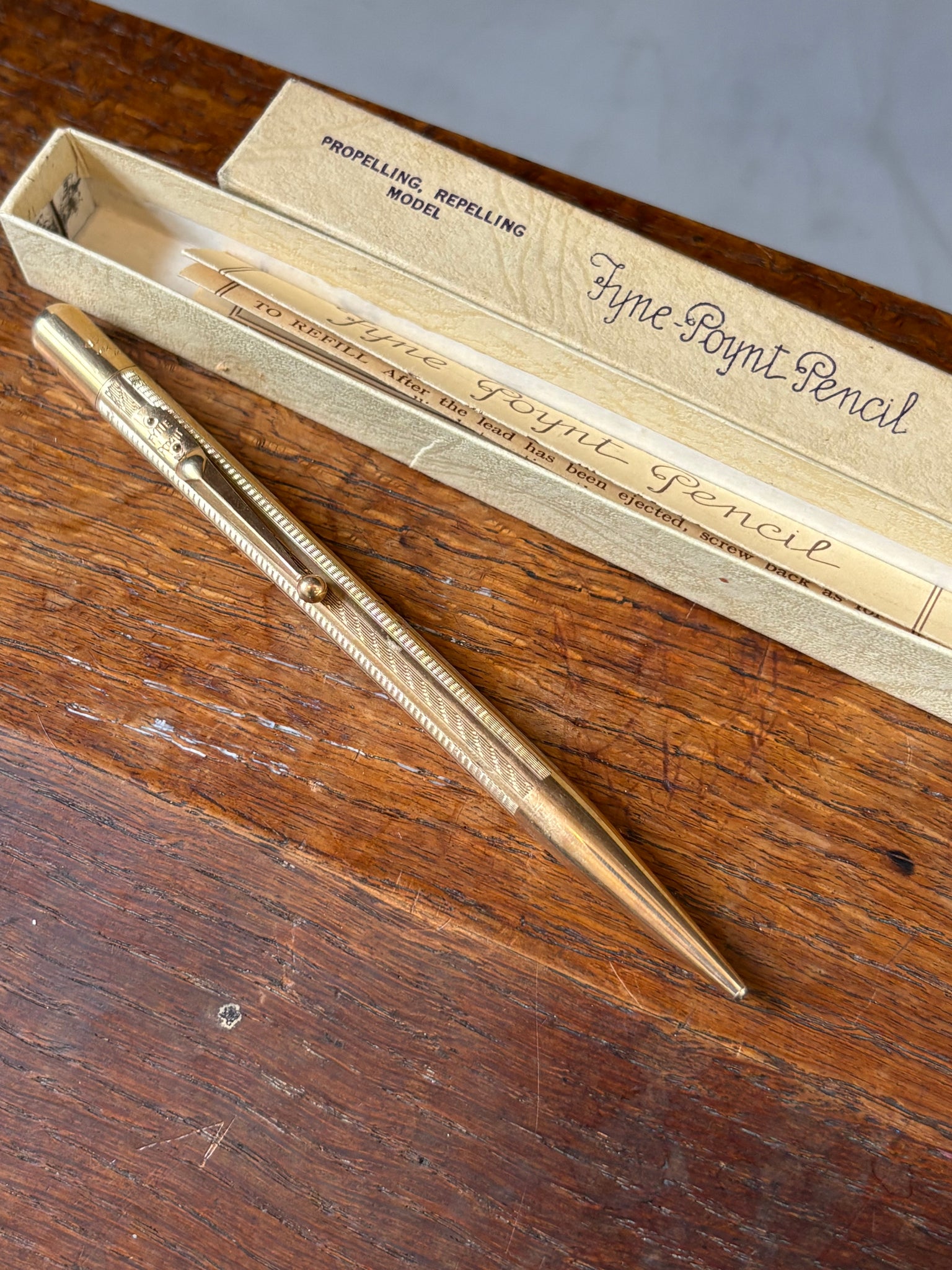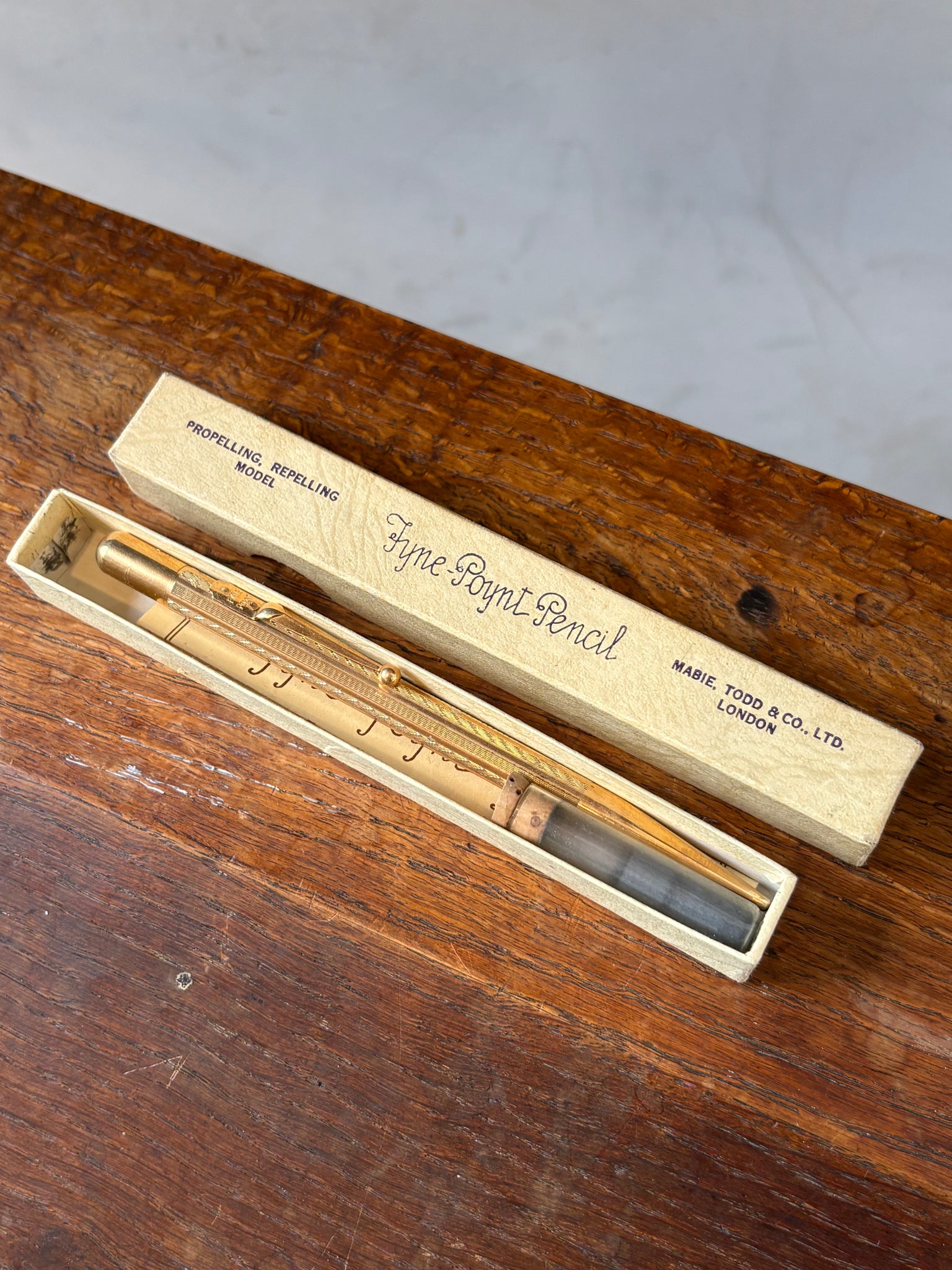 Vintage Mabie Todd Fyne-Poynt Propelling Pencil – Gold Plated – Original Box & Leads – 1940s