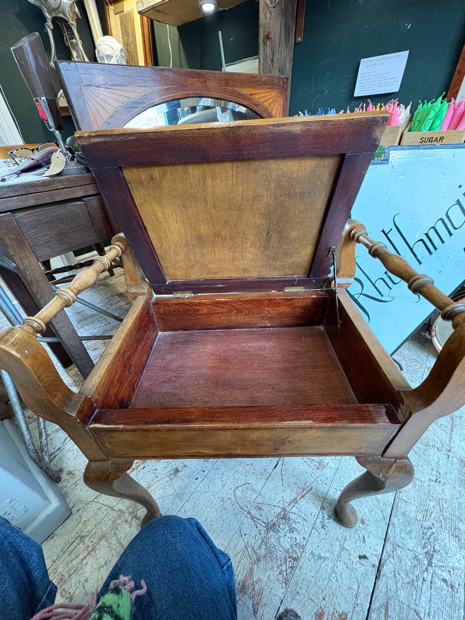 Vintage Queen Anne Revival Piano Stool with Storage – Walnut, c.1930s