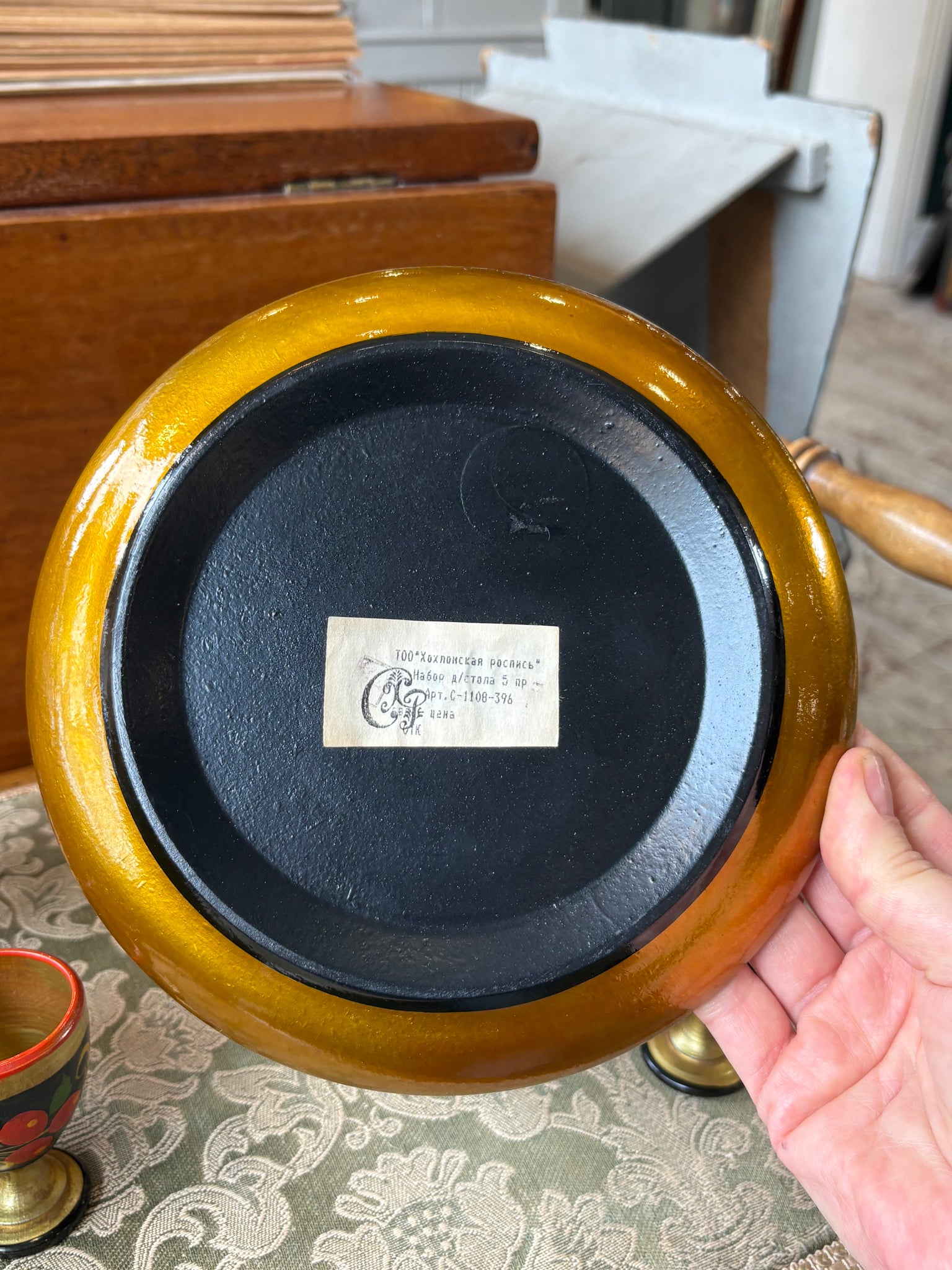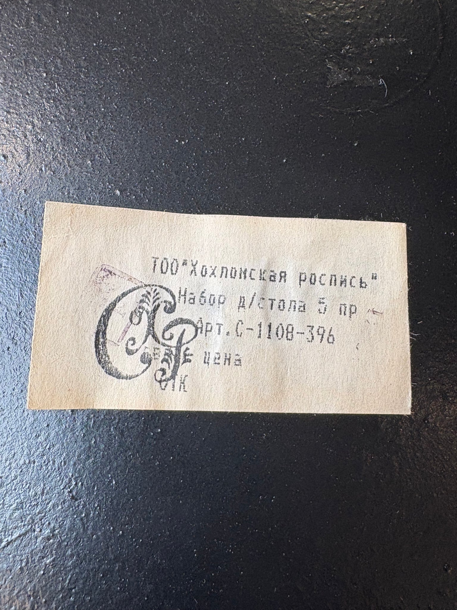 The tray retains its original Russian sales ticket on the base — a lovely detail for collectors.
