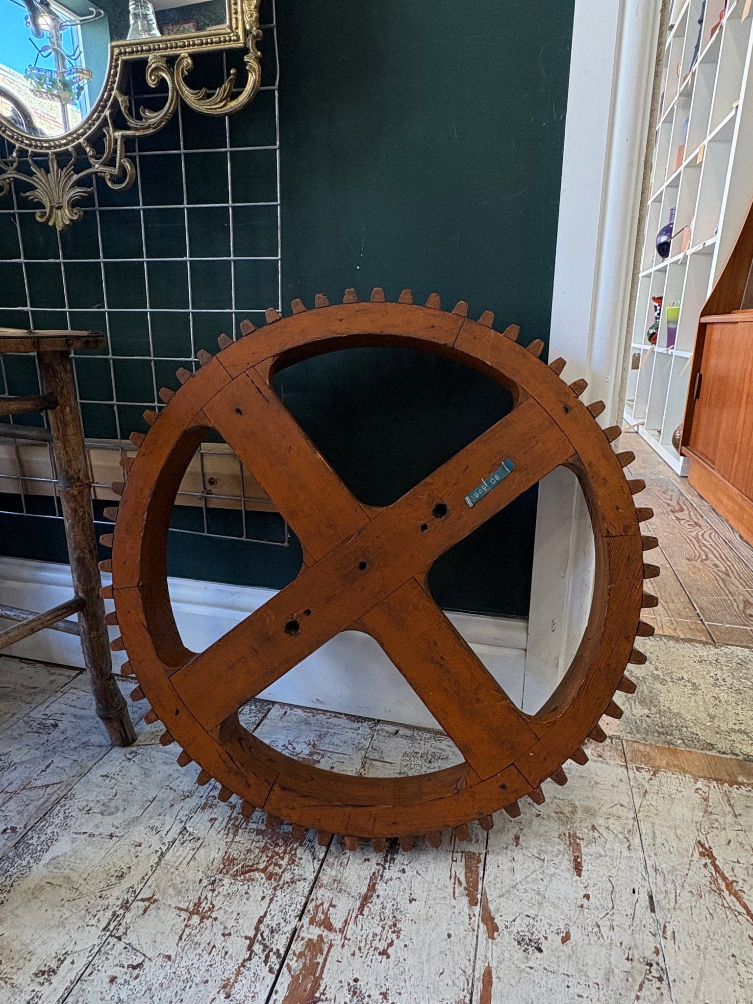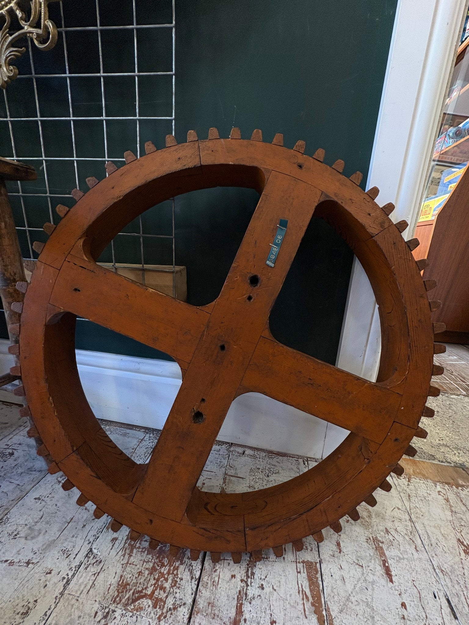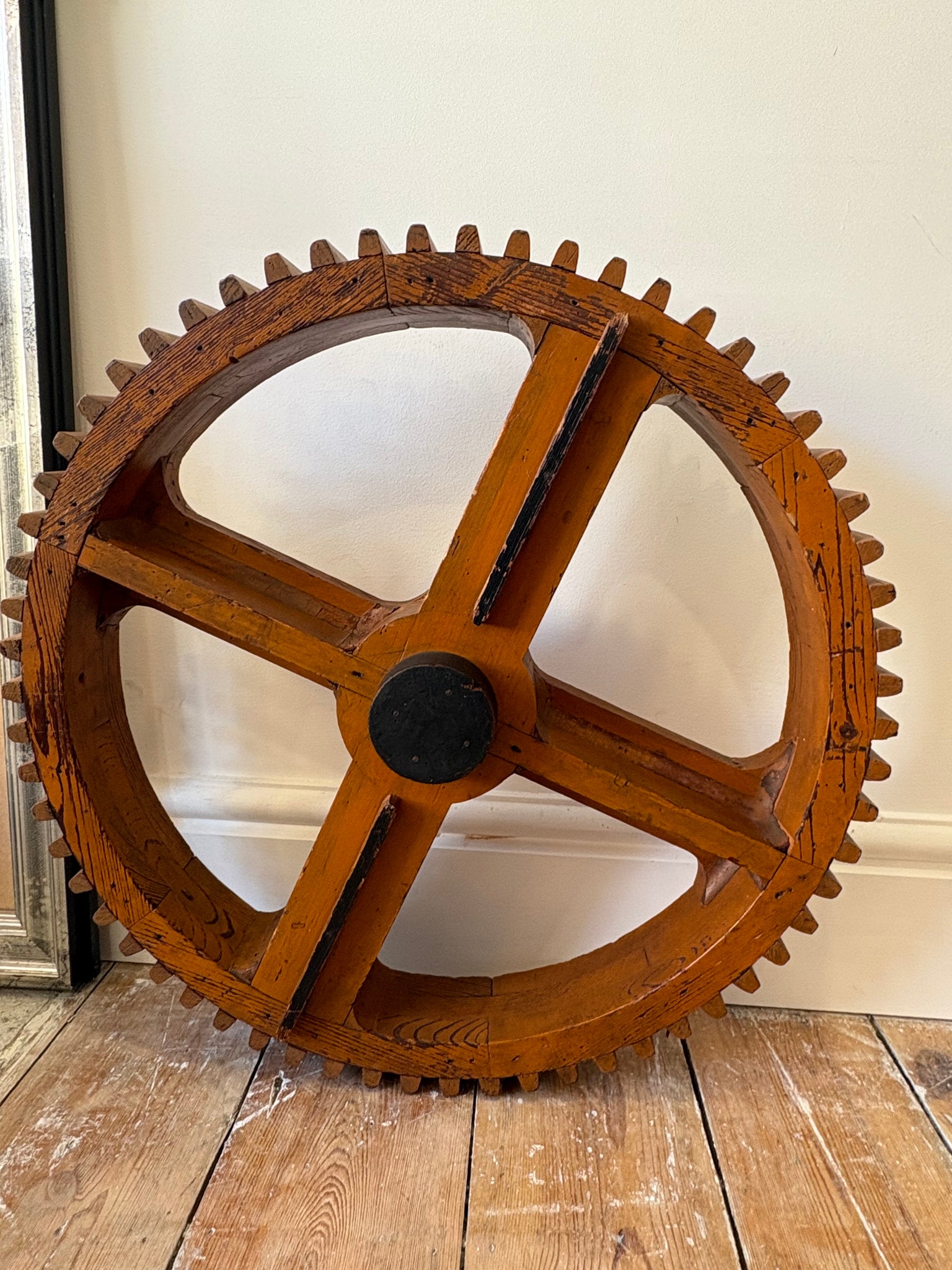 Vintage Wooden Cog Wheel Pattern – Industrial Gear Form – 52cm