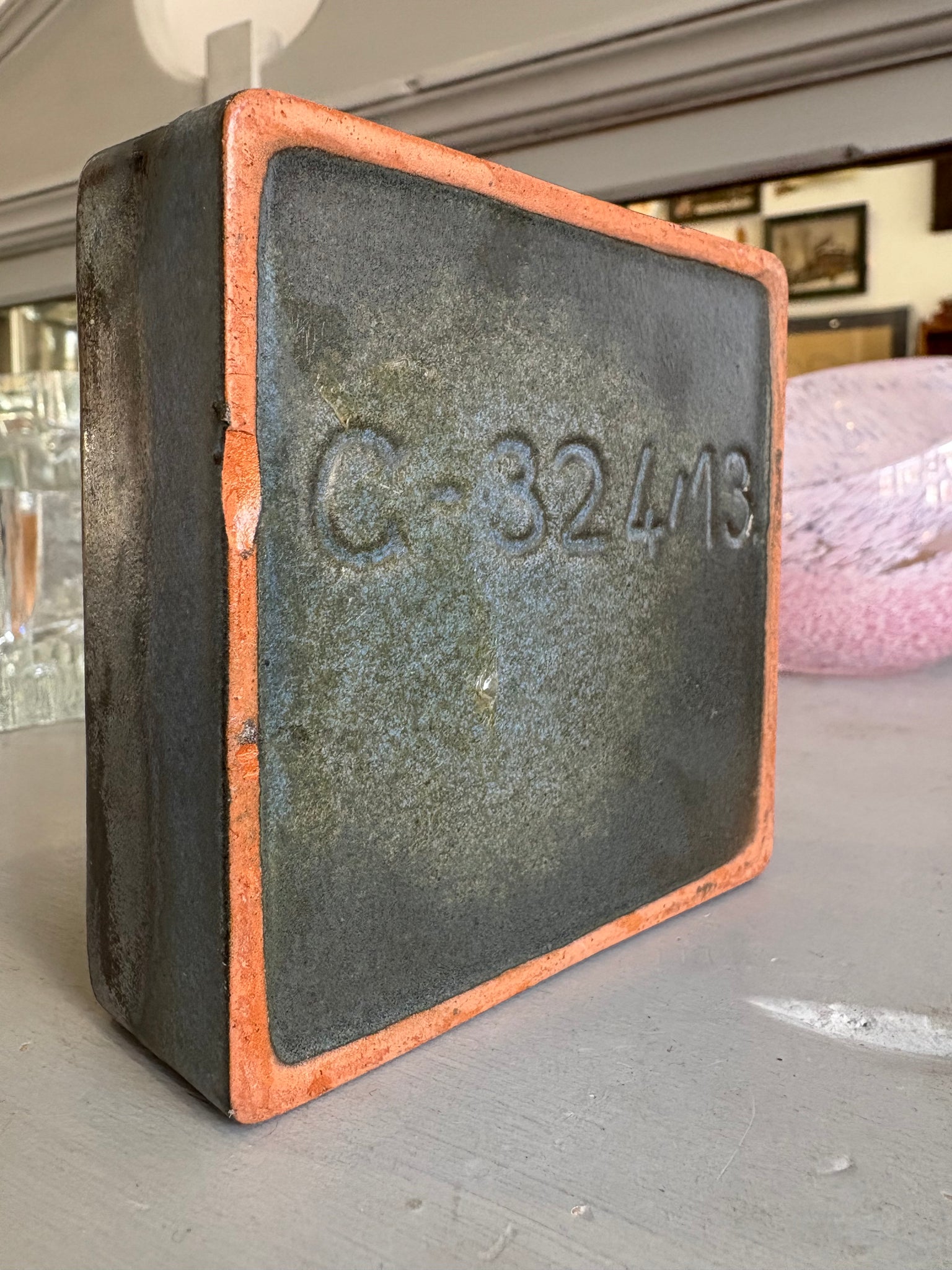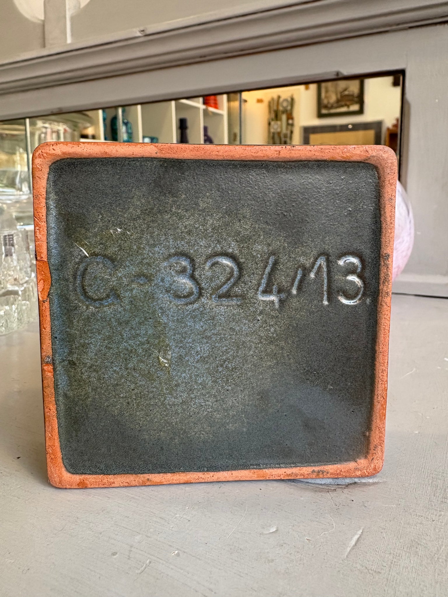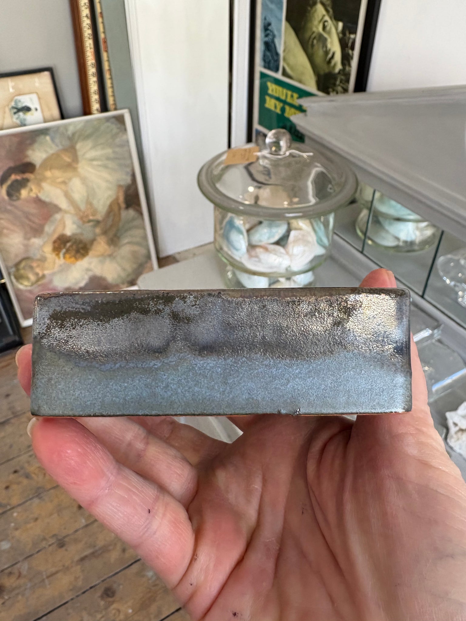 West German Pottery Square Trinket Dish – Blue Geometric, Mid Century Modern