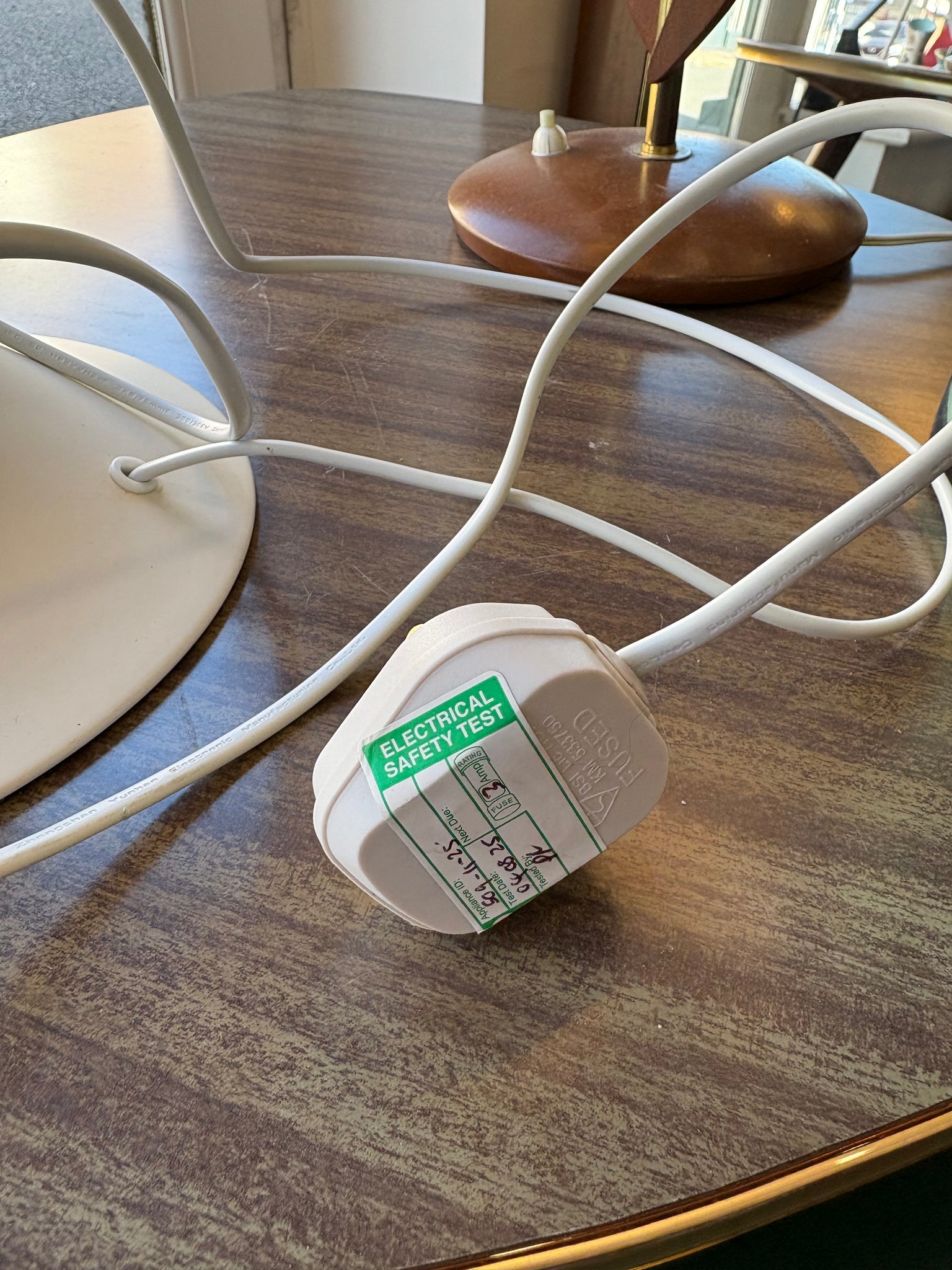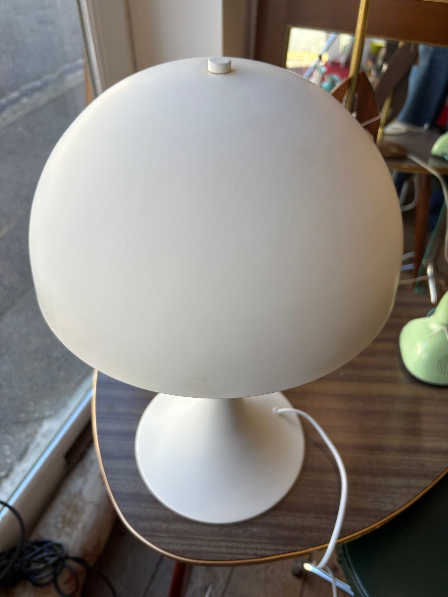 A stylish table lamp in the style of Verner Panton’s iconic Panthella design. Crafted in metal and finished in a crisp white, this piece has a clean, modern silhouette that makes it a timeless addition to any interior.